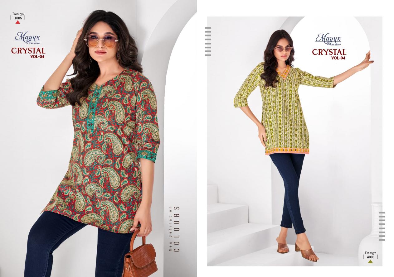 mayur creation crystal vol 4 poplin cotton classic look full stitch short kurtis