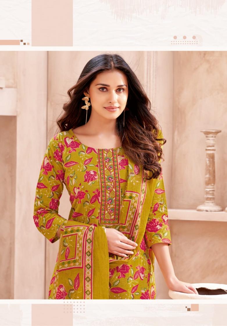 🪷 MAYUR CREATION Look stylish & comfortable in this summer season 🤩 Catalog :- 🌞 ELEGANCE vol 8 🌞 👗TOP :- Fully stich Pure Cotton print with neck embroidery tie patti work Bottom :- Pure cotton pant with fancy Style Size :- 4XL(24) 5XL(25) ☣Designs :- 10 pcs Rate 510 PACKING DETAILS |