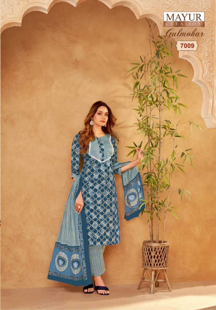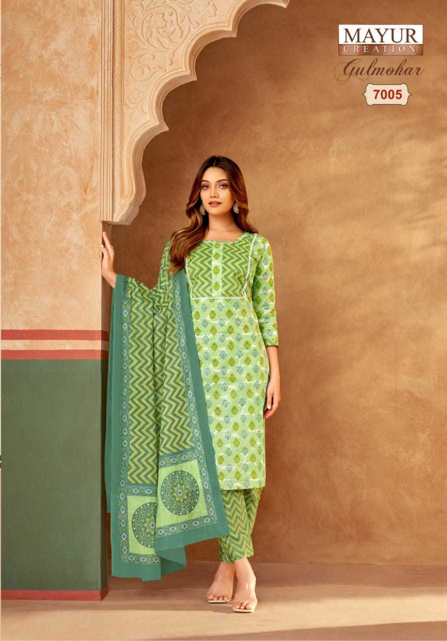 Catalog :- 🌞 GULMOHAR VOL 7 🌞 👗TOP :- Fully stich Pure Cotton print with style Bottom :- Pure cotton pant with fancy Style Size :- 3XL Rate :- 470 ☣Designs :- 10 |