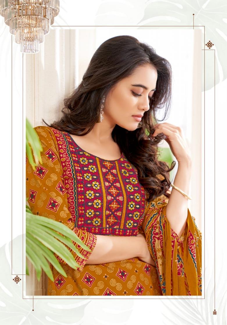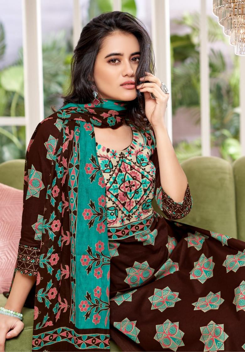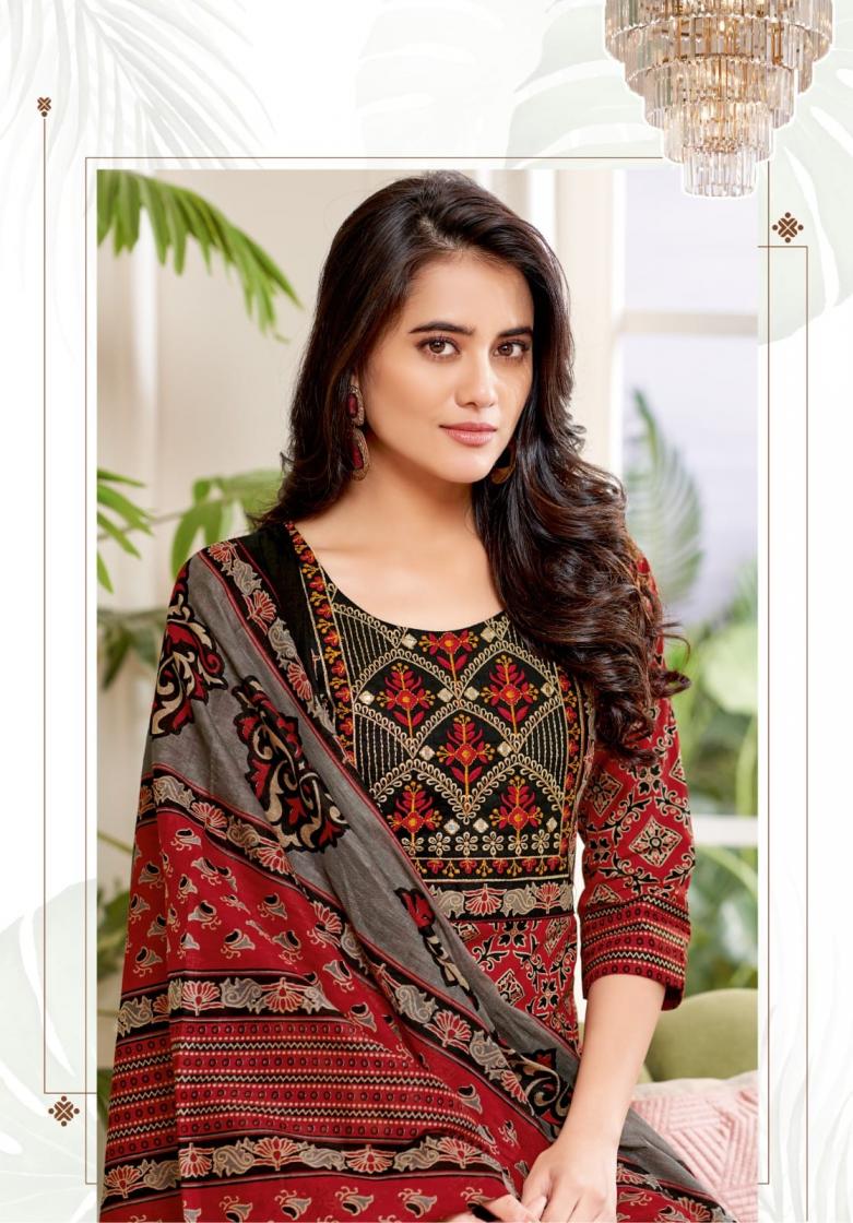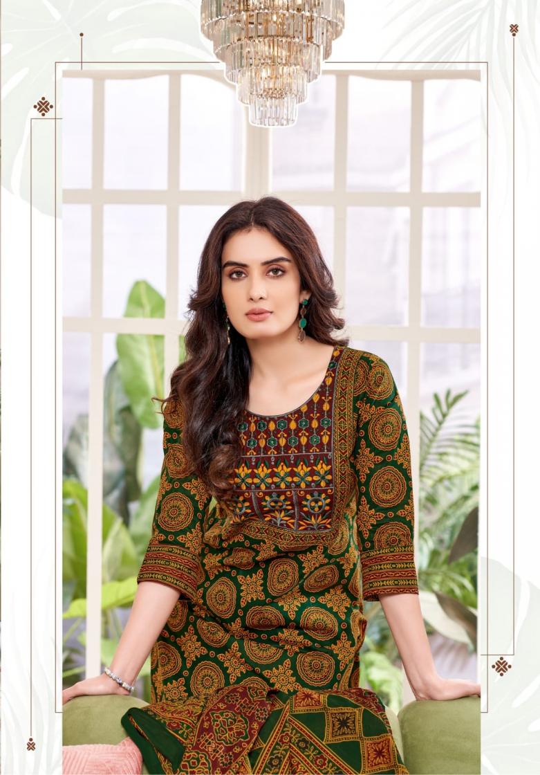 Catalog :- 🌞 AJARAKH vol 7 🌞 👗TOP :- Fully stich Pure Cotton print with neck embroidery petch work Bottom :- Pure cotton pant with fancy Size :-4XL(24) 5XL(25) ☣Designs :- 10 pcs Rate :- 540 PACKING DETAILS |