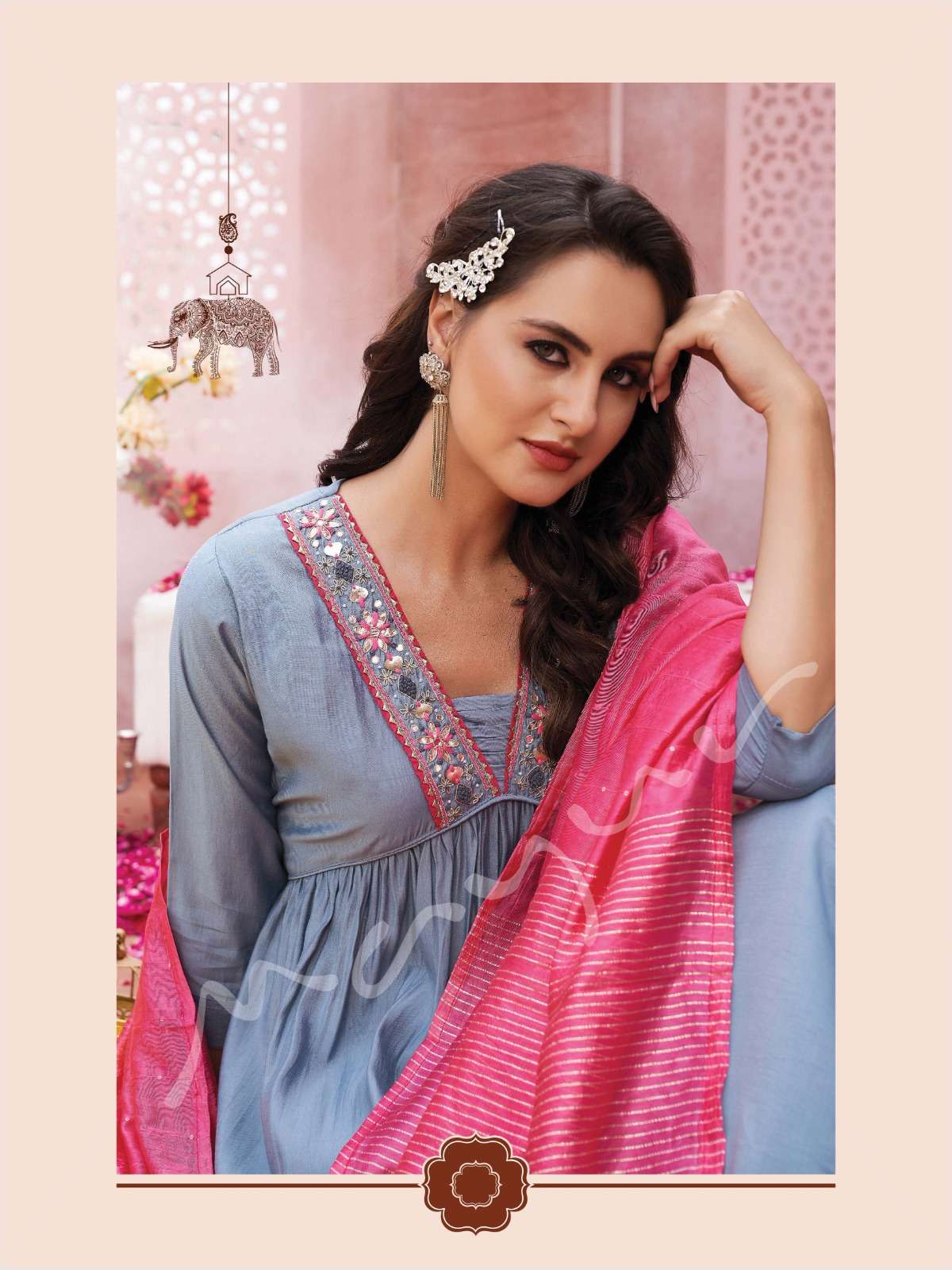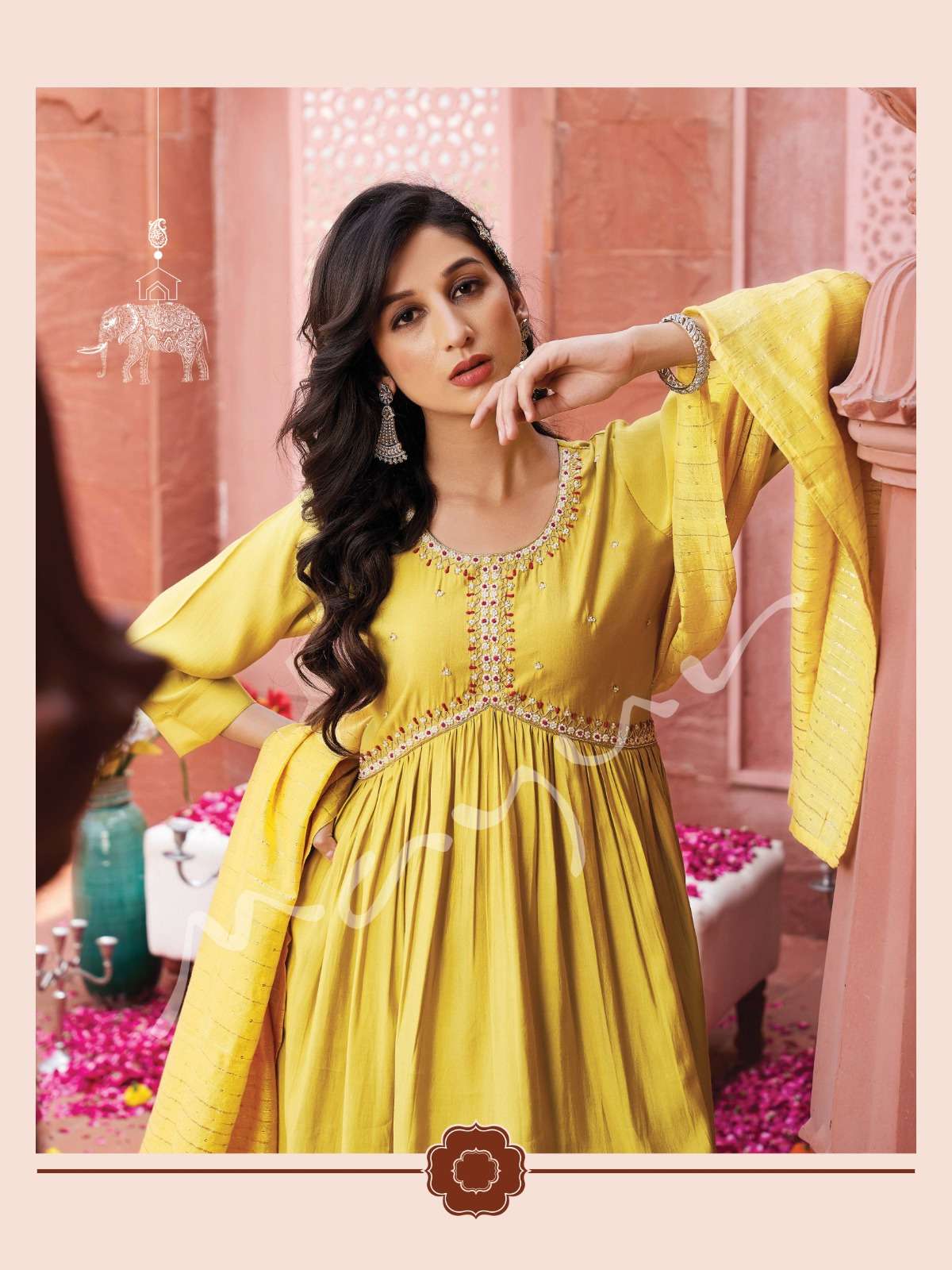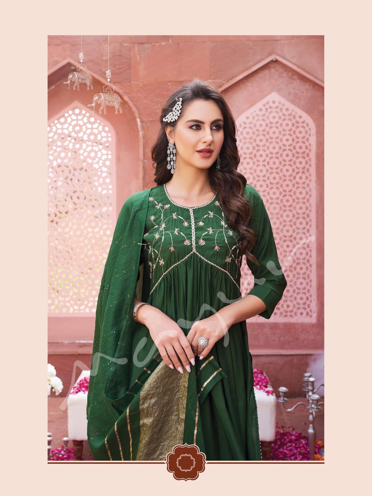 Modern, Classic, Crisp, Festive Favorite and super comfortable Ensembles by Mayur Fashion 💖 Aliya 💖 Aliya 3pcs set silhouettes are here to be your newest wardrobe addition ❤️💯 Handwork Aliya Pattern 3pcs set 👗No of Aliya Garments : 6 ✂Sizes available : M, L, XL, 2XL and 3XL Fabric Details : Kurta👚- Premium Viscous Silk with Designer Aliya Handwork Pattern - 45-46" Fancy Pant 👖 - Self Premium Viscous Silk Pant - 38-39" Dupatta 🧣 - Silk with Sequence and Weaving Pattern - 2.25mtrs Rate - 1351/- |