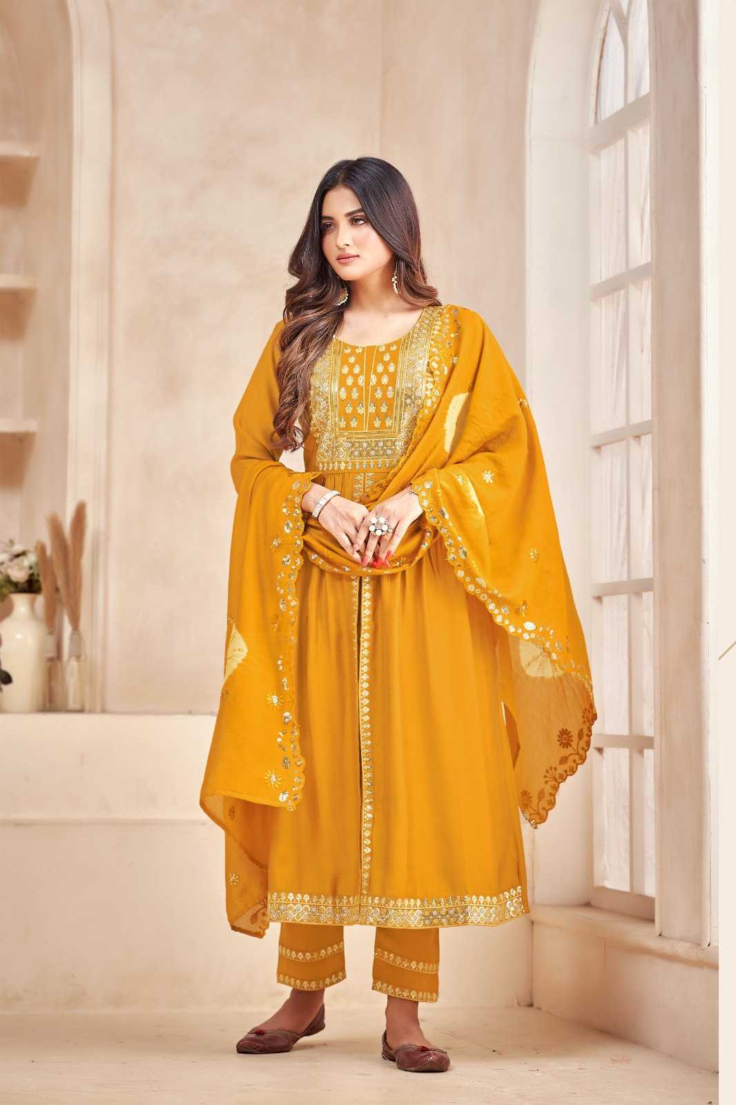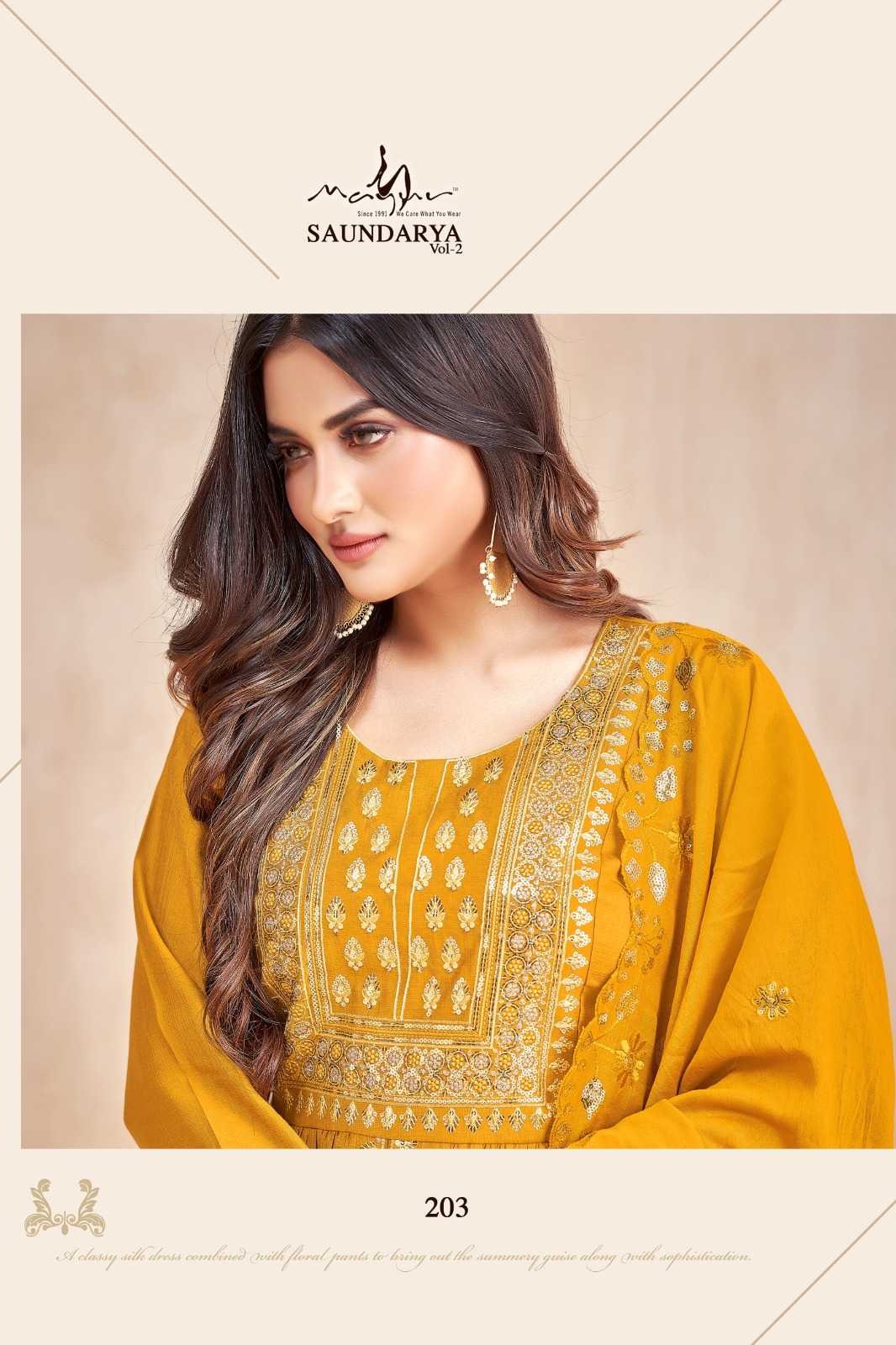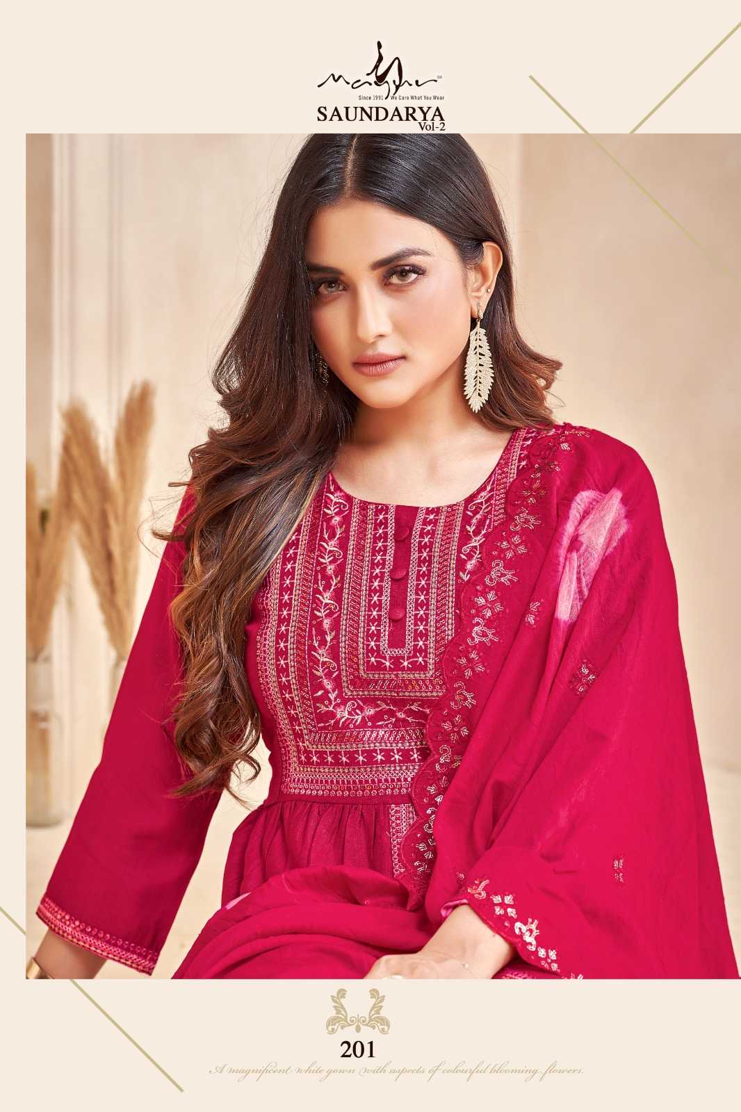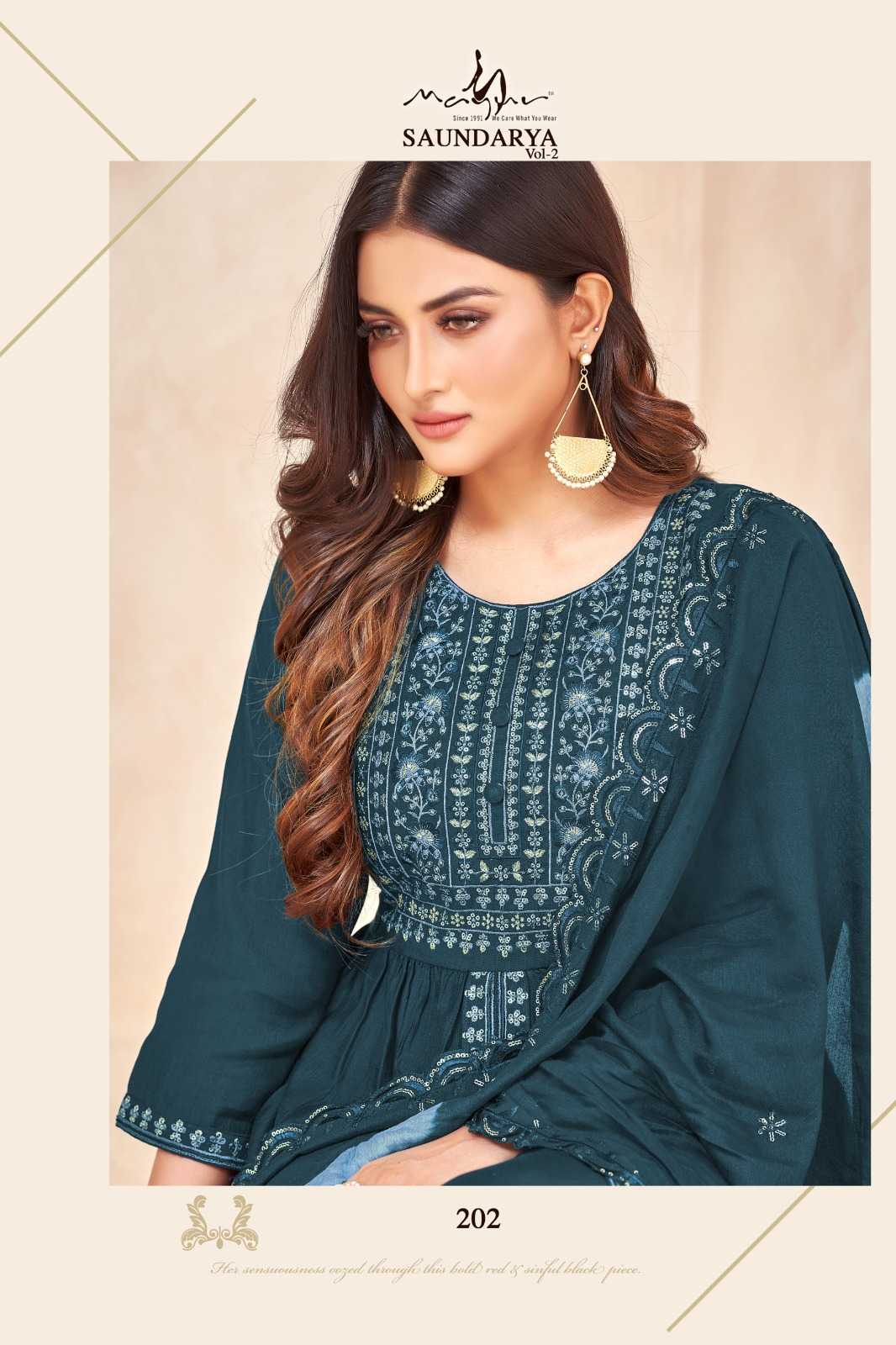 mayur fashion saundarya vol 2 festive wear centre slit ghera kurti pant dupatta set