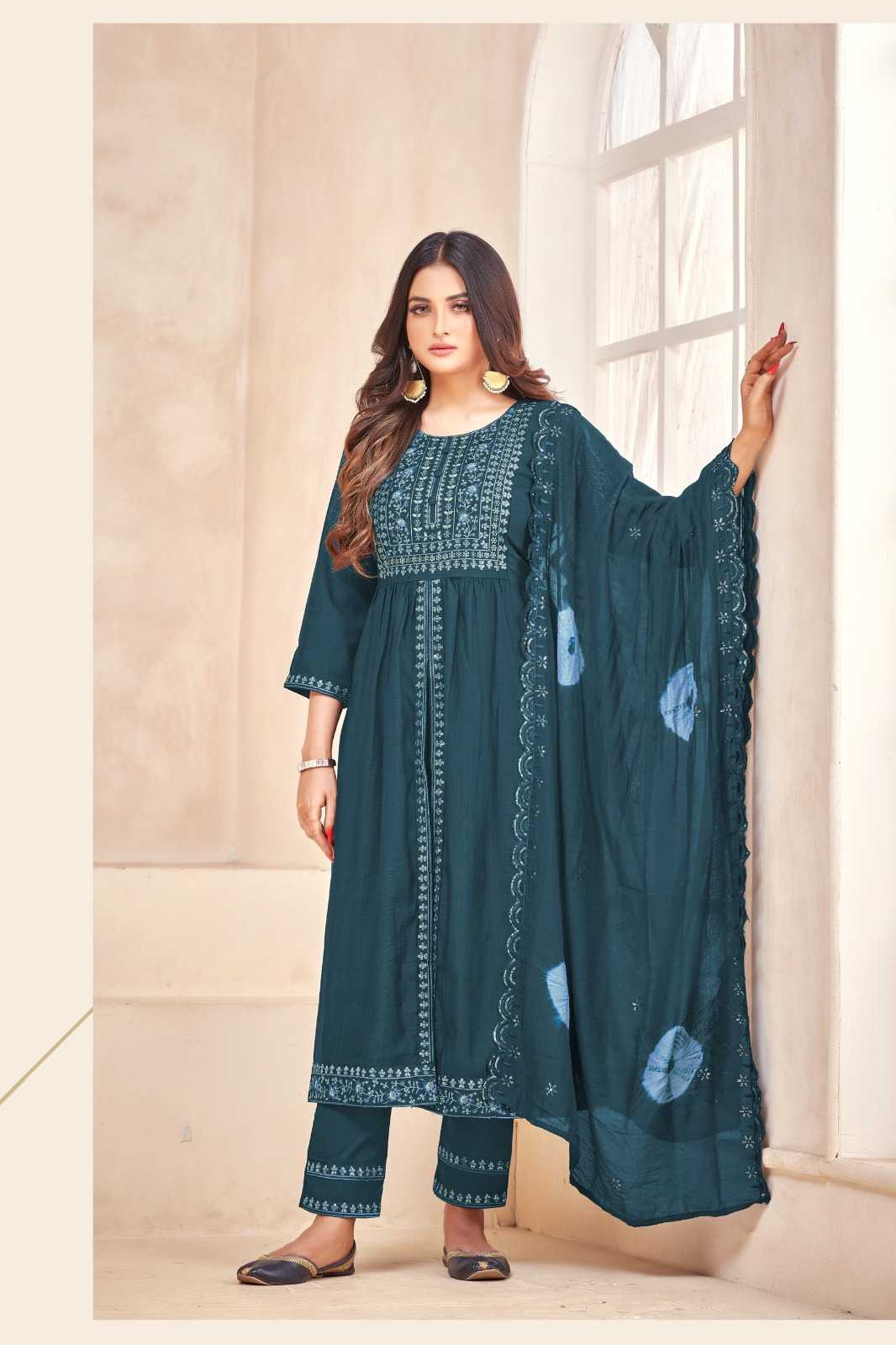 ✂ Sizes available : M L XL 2XL 3XL 4XL 5XL Fabric Details : Kurta 👗 - Viscous Bombay Silk (inner) - 44-45" Pants 👖 - Self Viscous - 38" Dupatta 🧣 - Self Silk Tie Dye with self lucknowi work Dupatta - 2.35mtrs Styling - Mid Cut Gehr Aline Designer Slit Daman Neck Dupatta and Pant work 3pcs suit set Saundarya Volume 2 M-2XL - 1240/- |