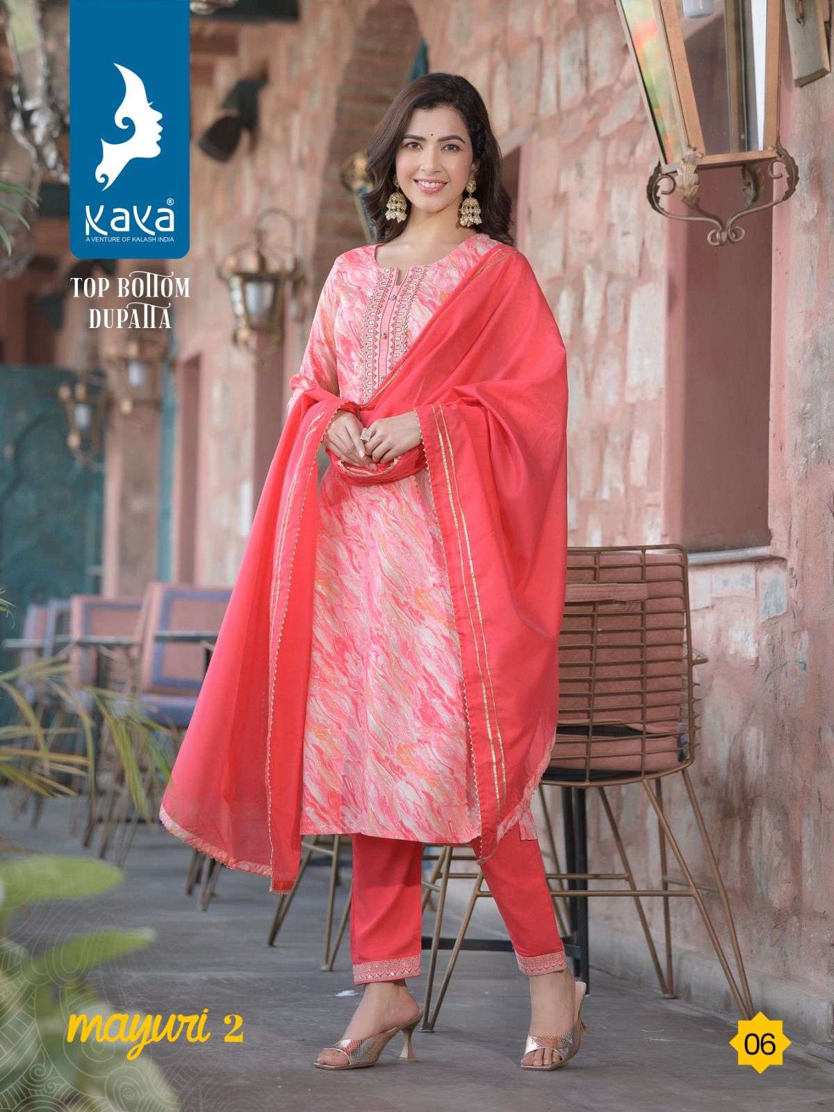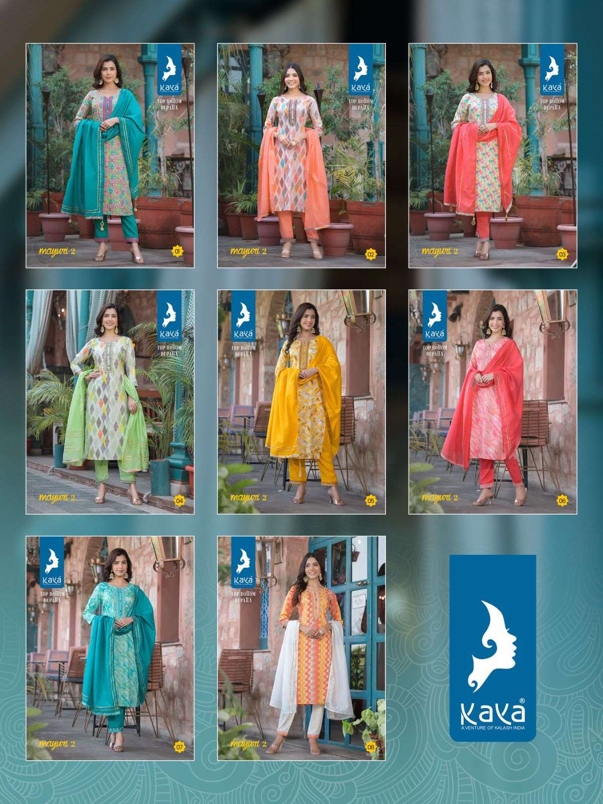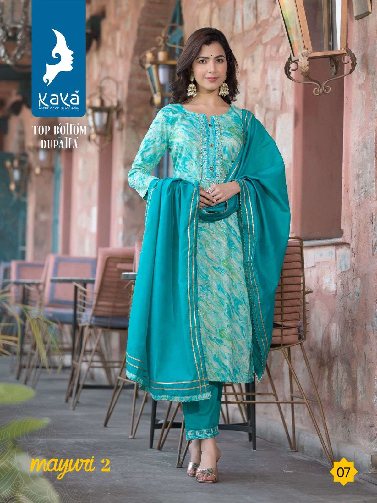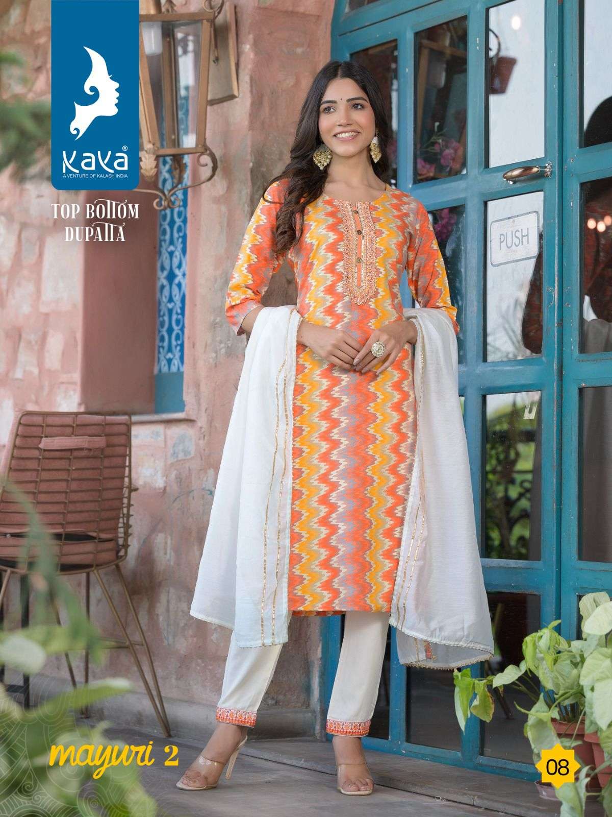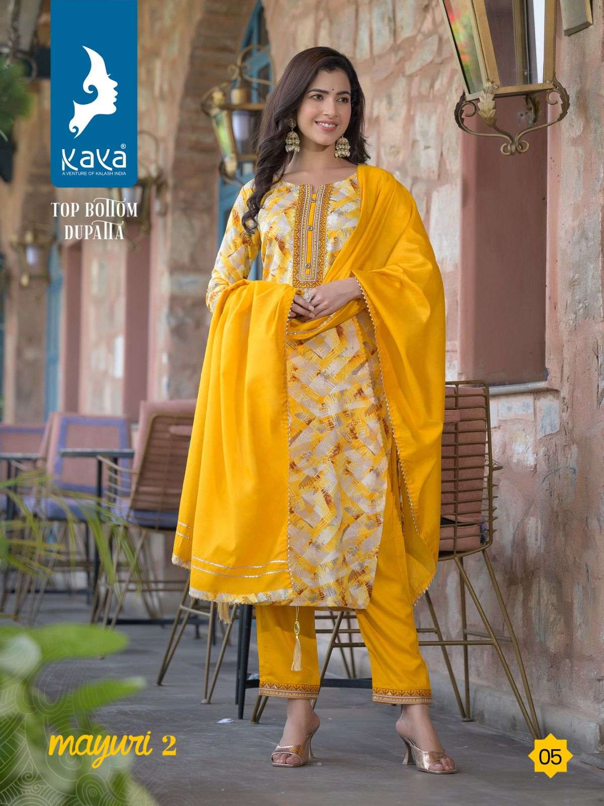 mayuri vol 2 by kaya 3pcs set amazing rayon print kurti with dyed pant and chanderi dupatta