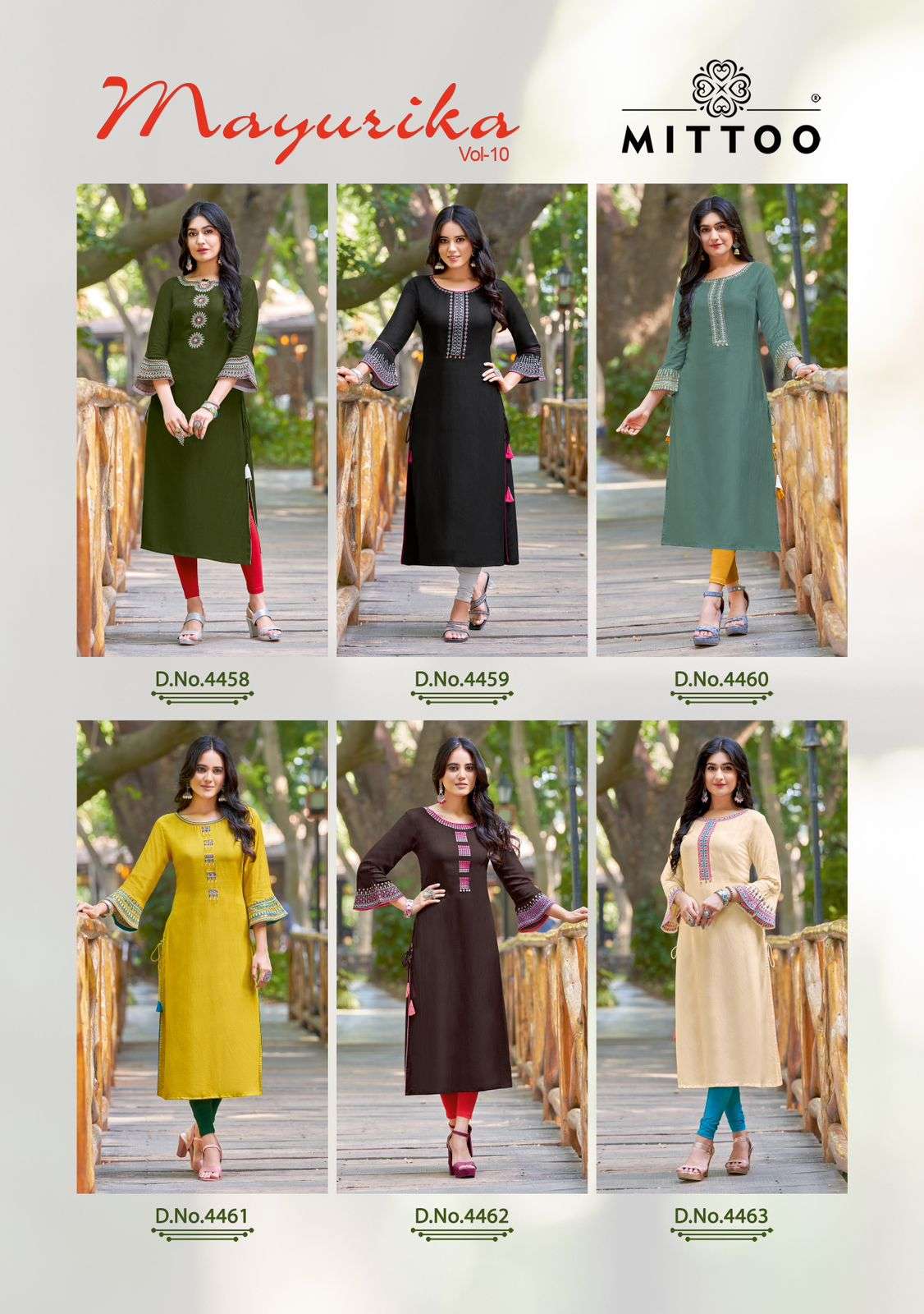 mayurika vol 10 by mittoo fancy stitch kurtis with frill sleeve catalog