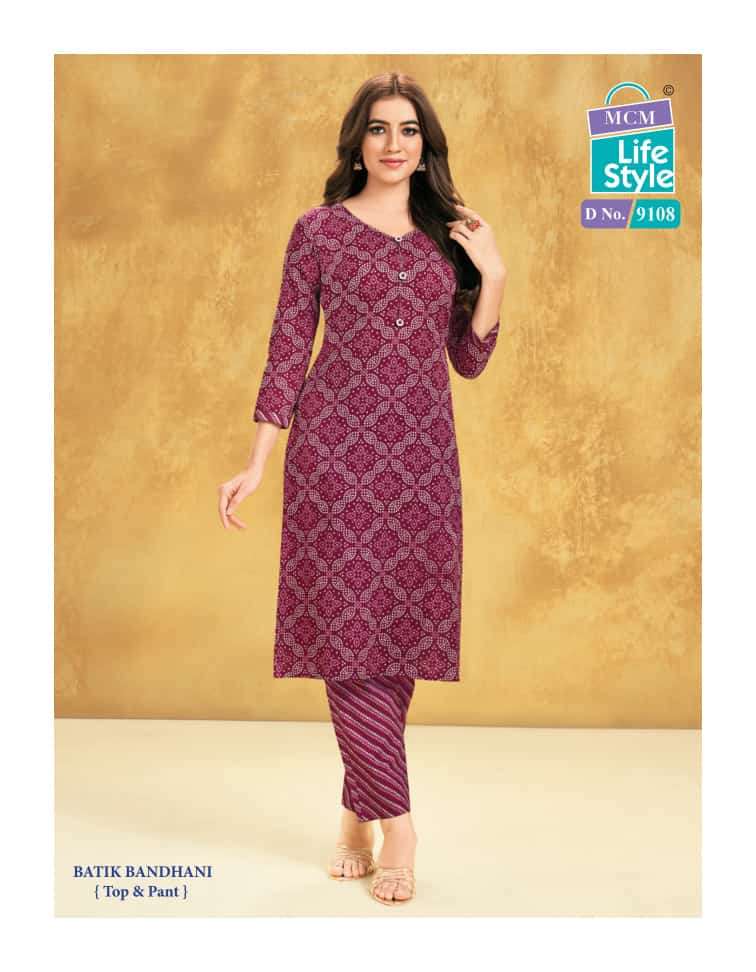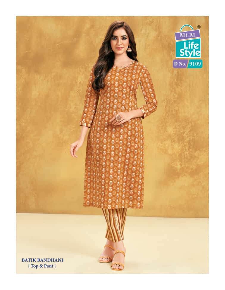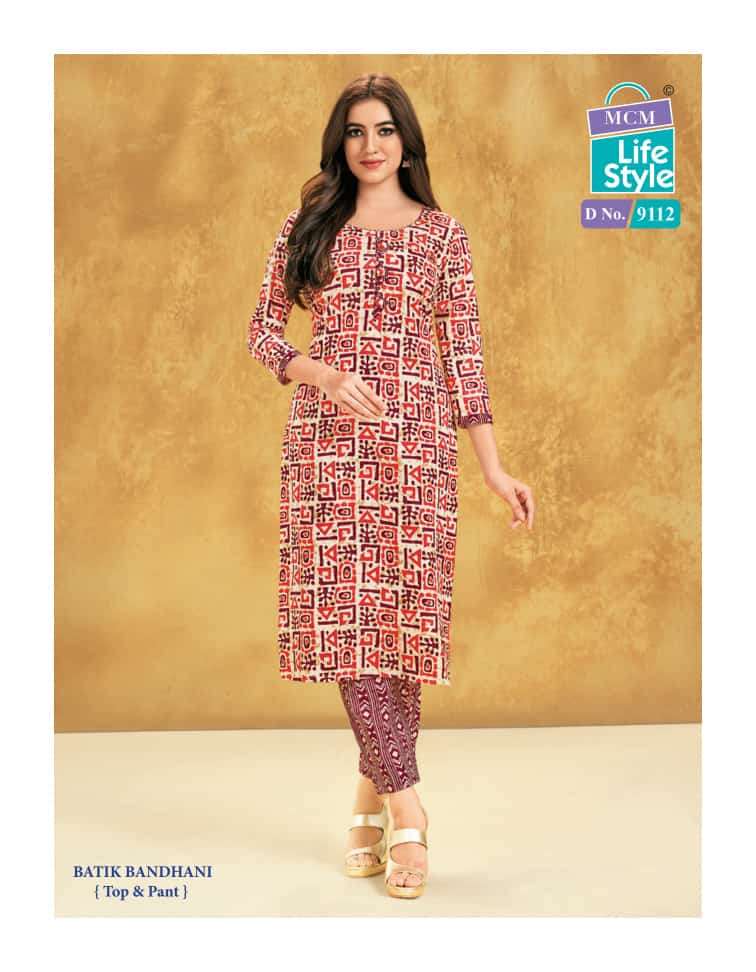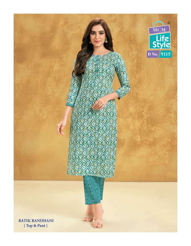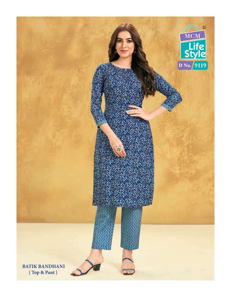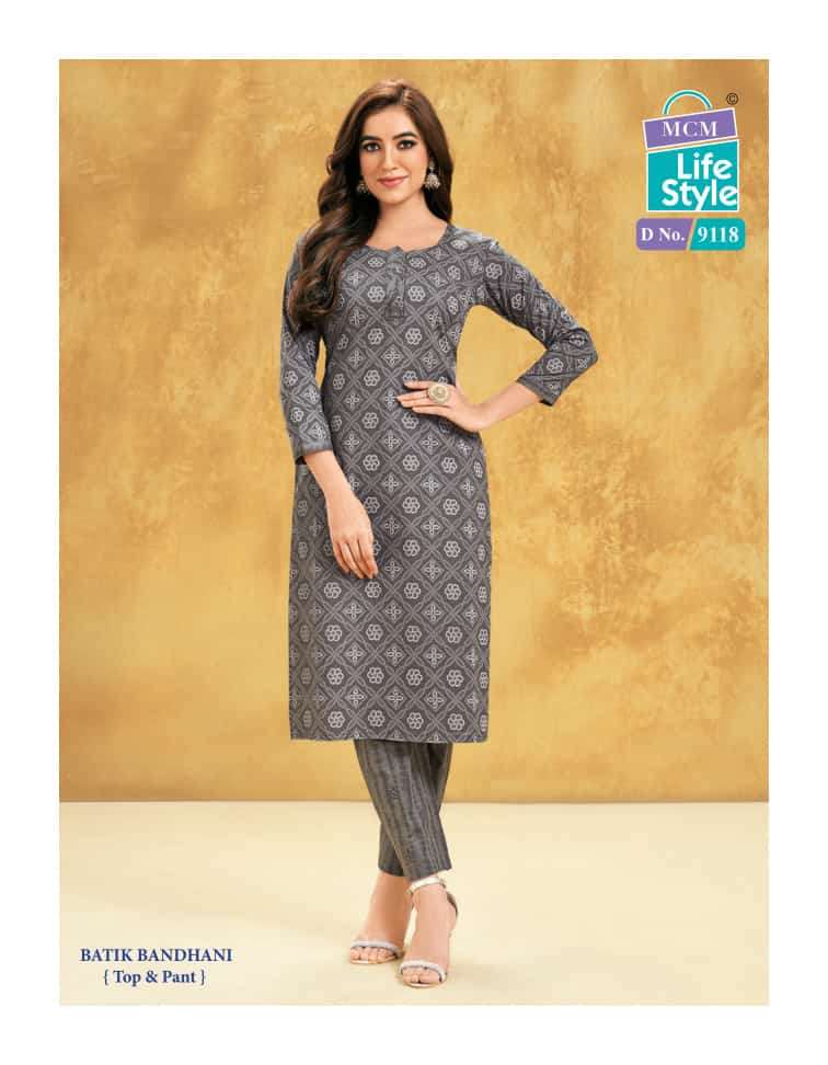 mcm lifestyle batik bandhani special pair 2pcs set fancy straight kurti with pant catalog