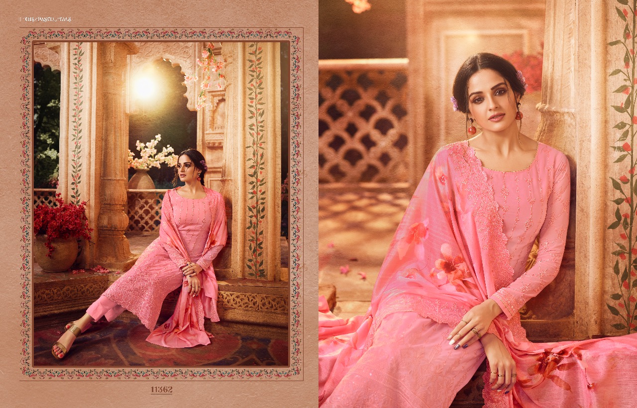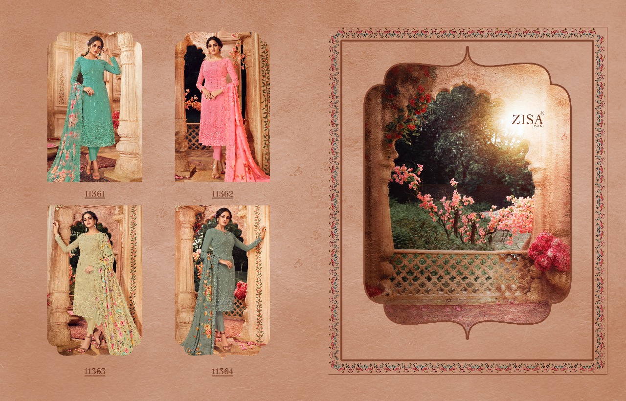 Zisa vol 63 Top-fox jorgget with embroidery work Duppta-chinon digital print with embroidery work Bottom inner-santoon Pcs - 04 Rate - 1305/-₹ |