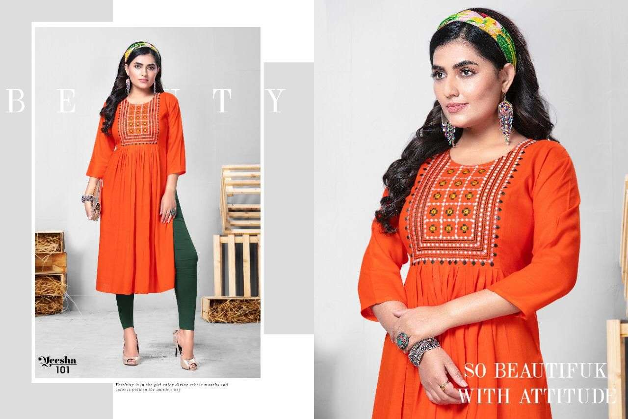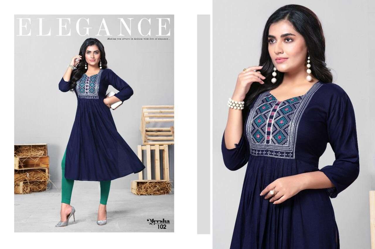 Meesha By Beauty Queen Heavy Rayon Slub Nayra Cut Kurti Catlog Collection Wholesaler Best Rate In Surat