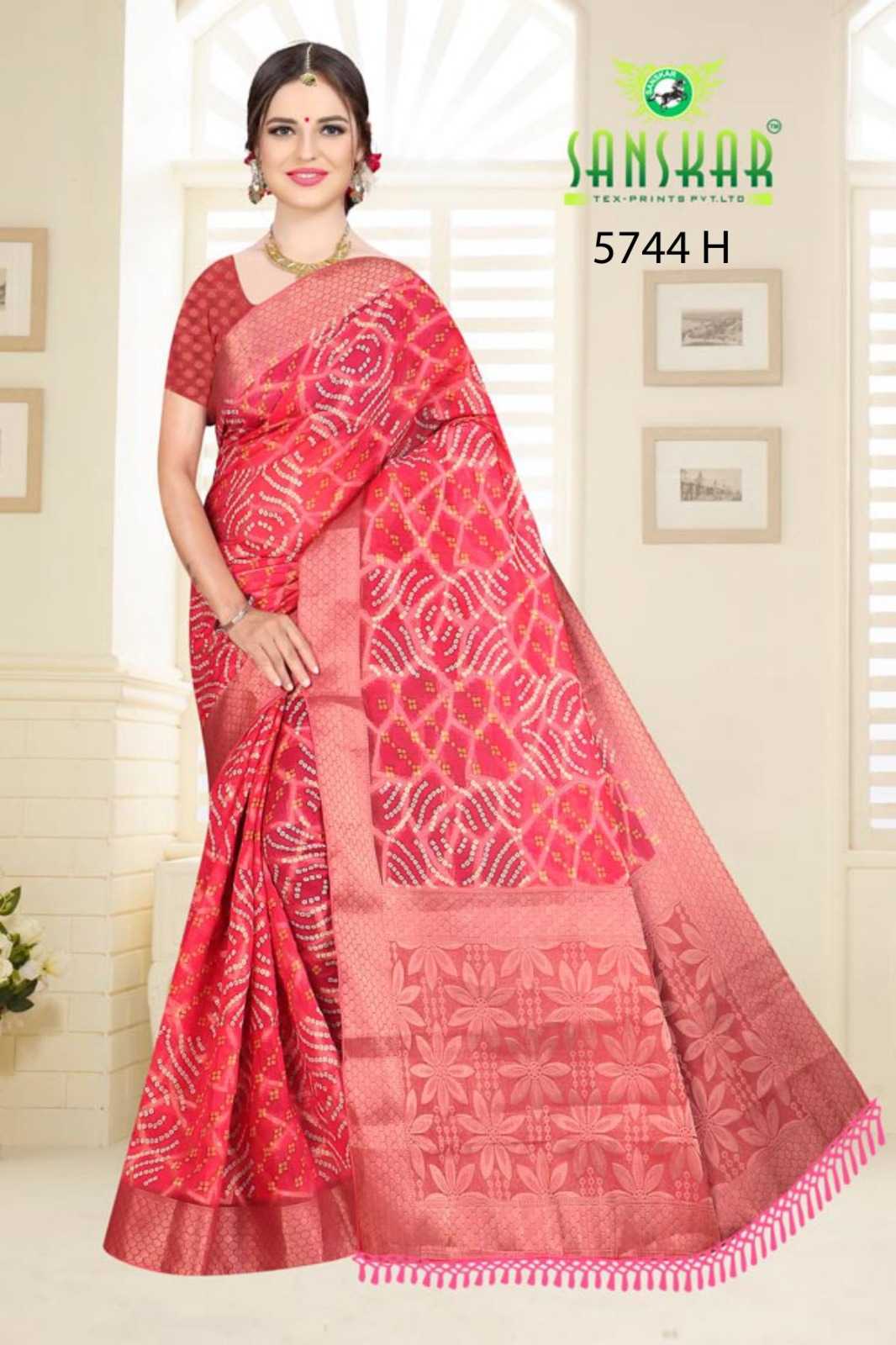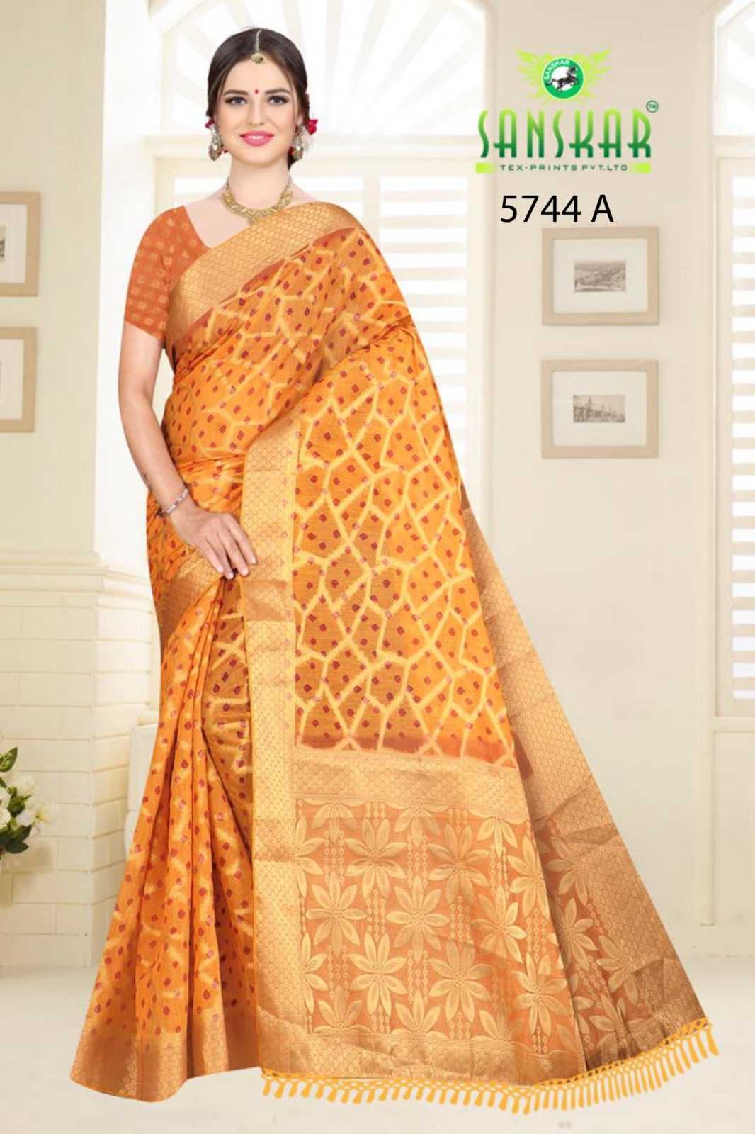 megha 5744 by sanskar amazing look cotton jacquard weaving pattern saree