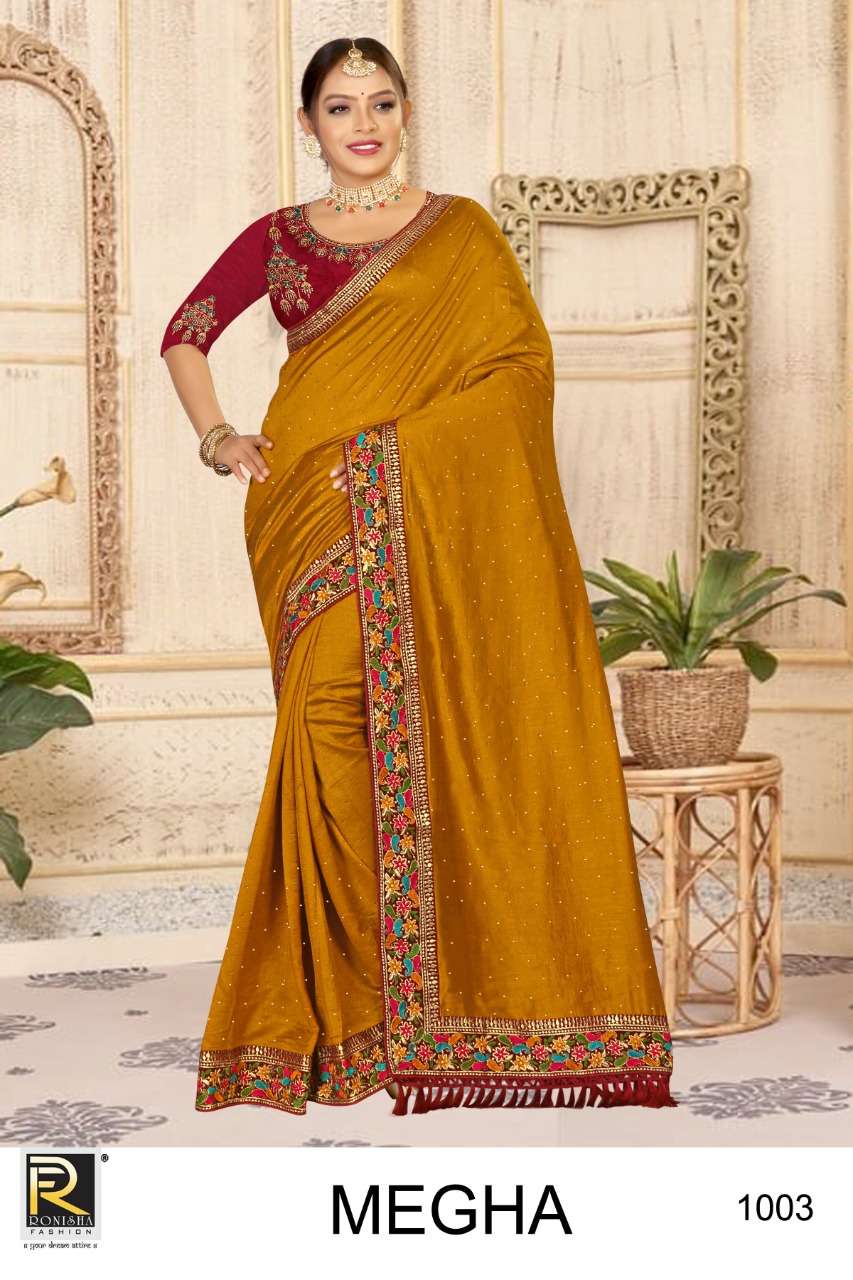 Megha by ranjna saree embroidery worked border blouse beautiful collection