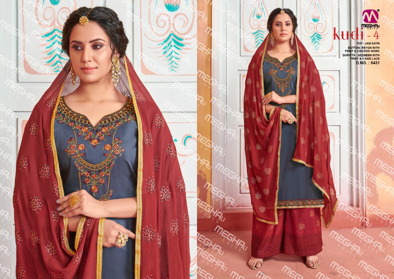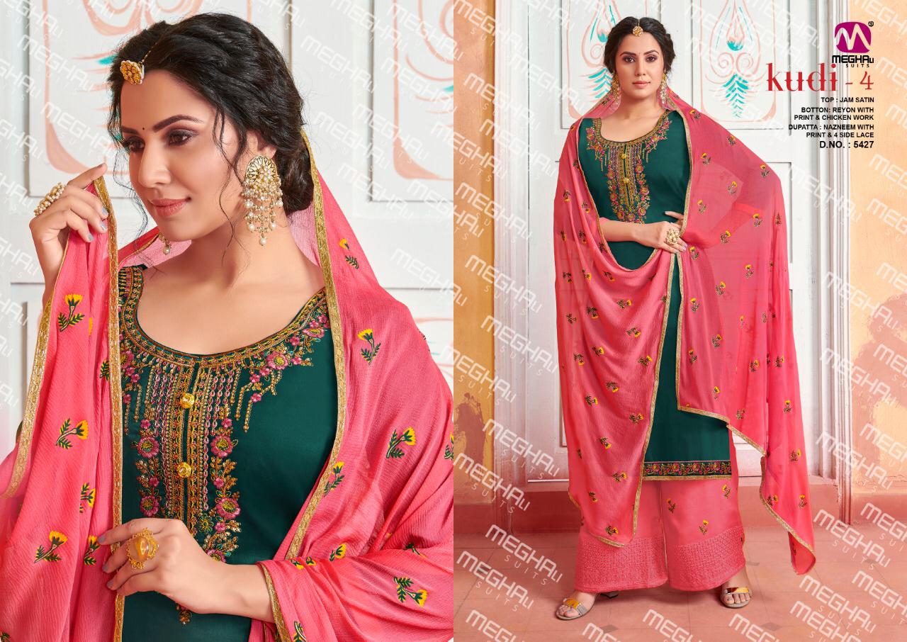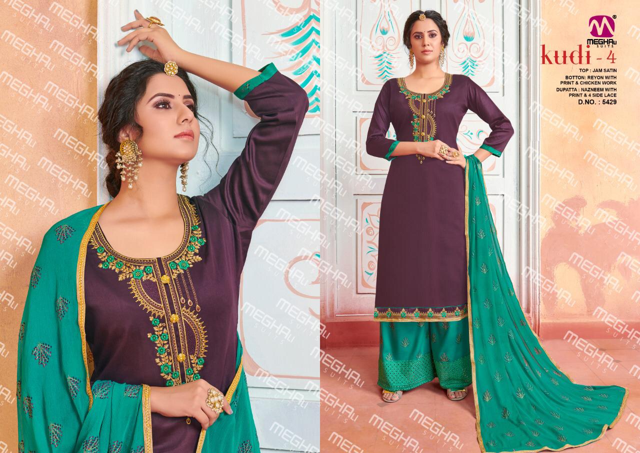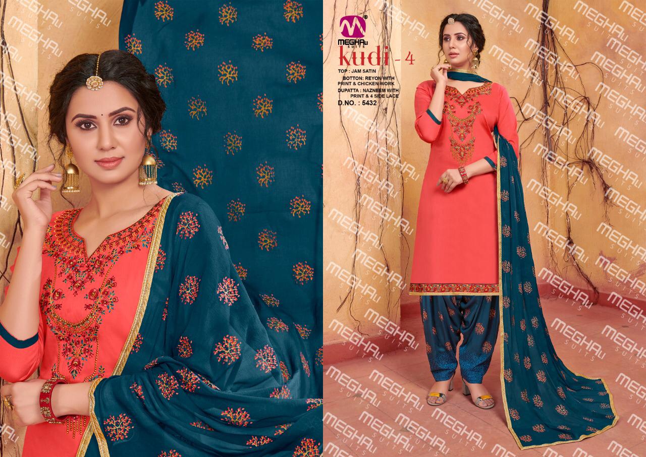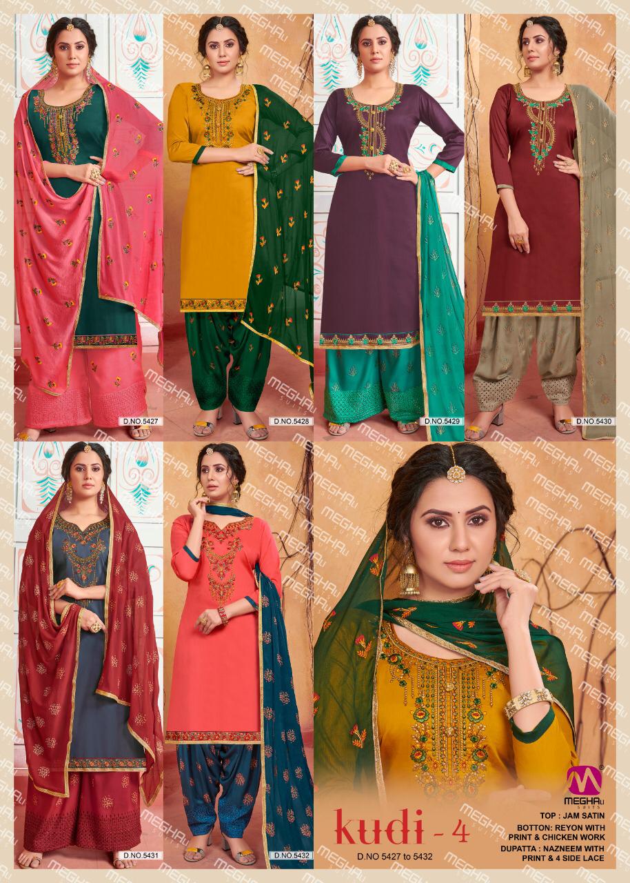 Meghali Kudi Vol 4 Jam Satin Dress Materials Supplier