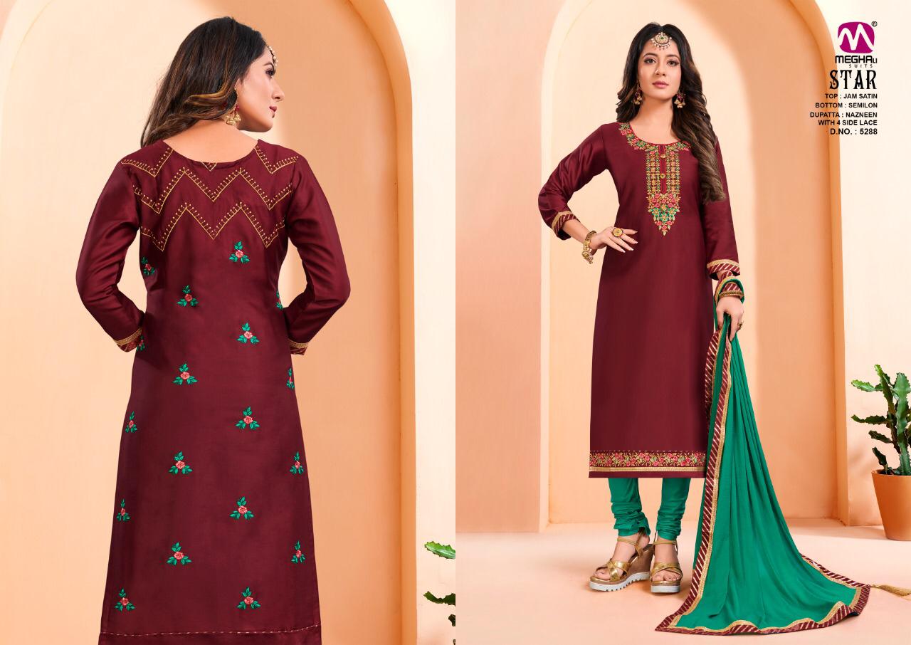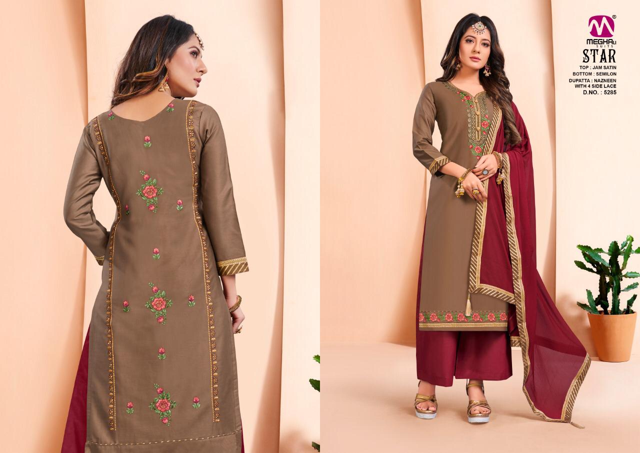 Meghali Suits Star Jam Satin Dress Materials Designs Wholesale Price