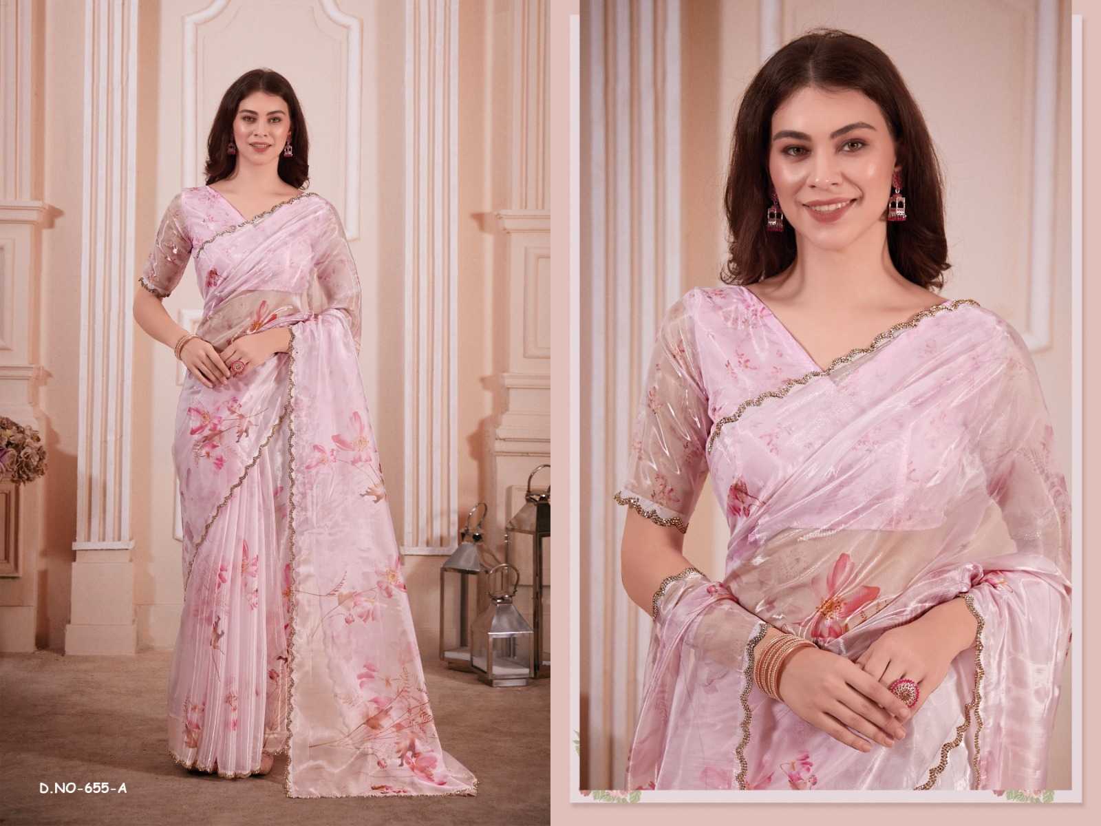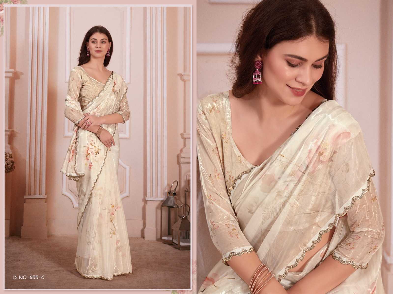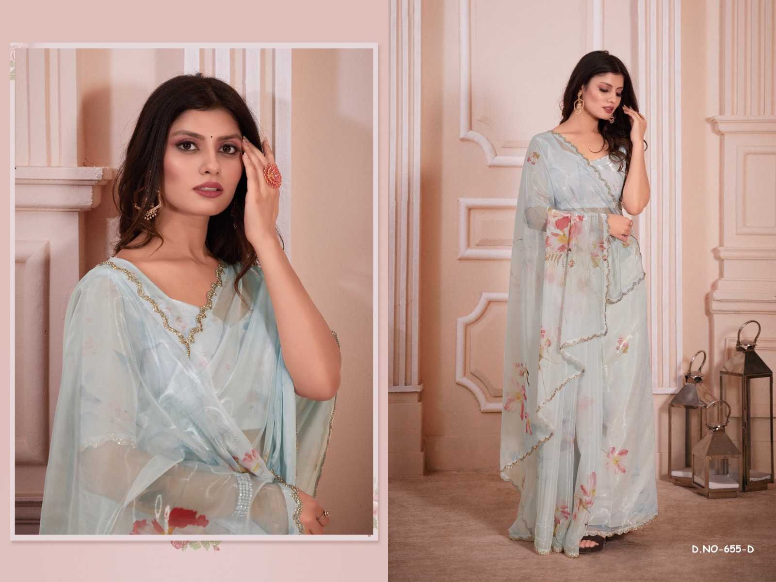 Brand Name – Mehek Catalog : Mahek D.No. 655A TO 655E 5 colours Saree Fabric : Rate : 1750/- Gst 5% Extra Book Your Order Now |
