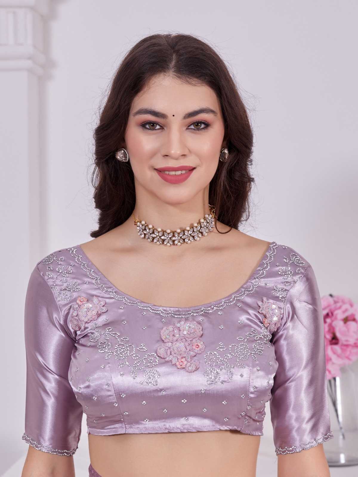 Brand Name – Mehak Catalog : Mahek D.No. 737A To 737D LIGHT COLOUR Colour 4 FABRIC: Burberry Fabric with Sequinned Embroidered Patch Work Butta And Zircon Heavy Border Diamond Satin Fabric Heavy Zircon and Patchwork Blouse Rate : 2450/- Gst 5% Extra Occasion : wedding, party wear |
