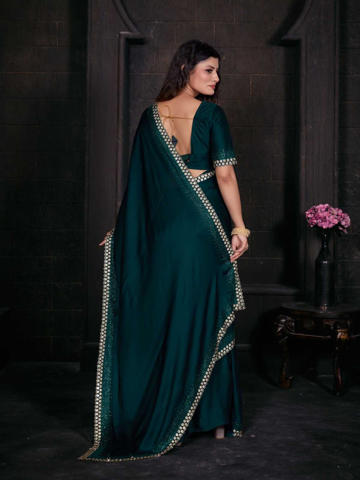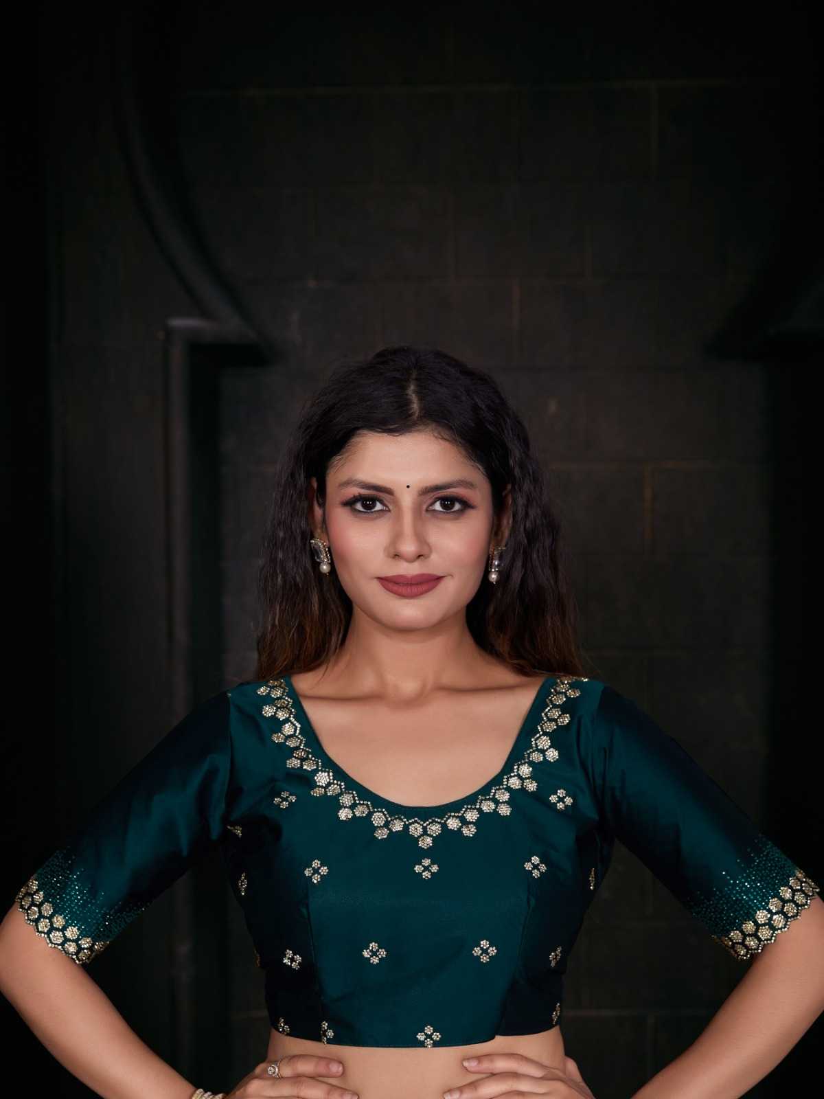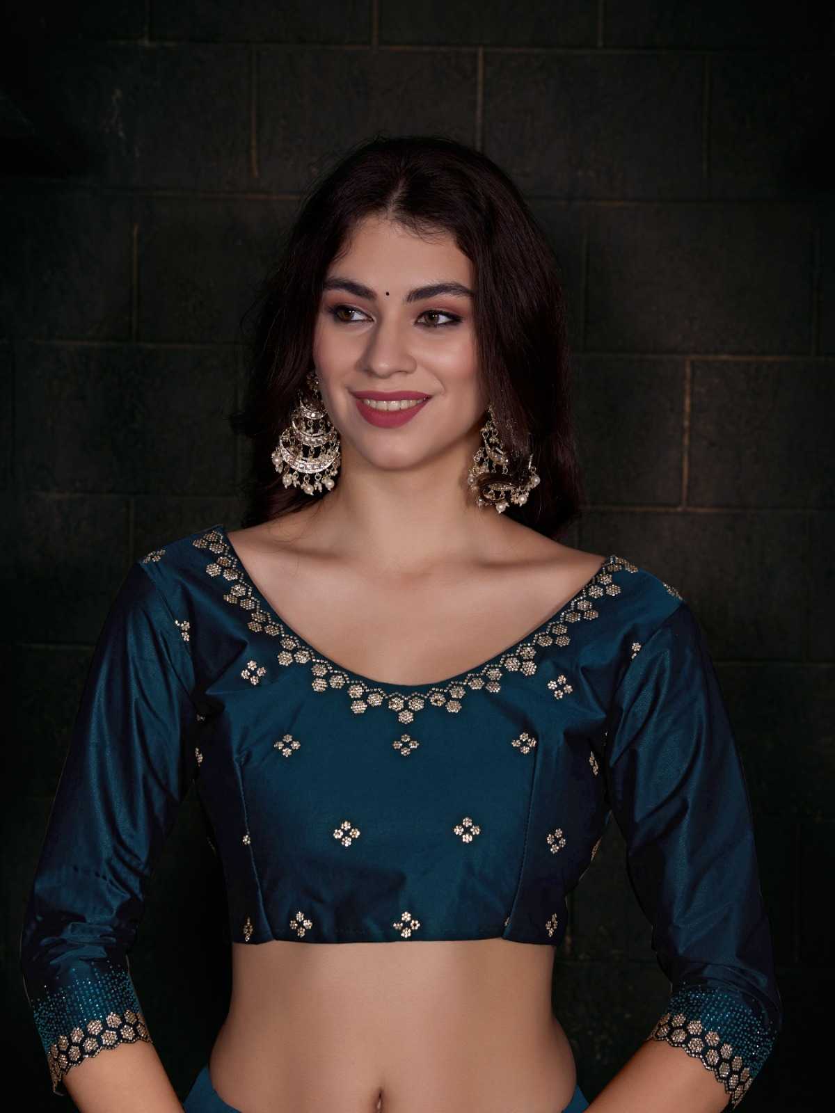 Brand Name – Mehak Catalog : Mahek D.No. 748A To 748F Colour 6 FABRIC: Pure Satin Georgette Blooming Fabric with Heavy Handwork Zircon Cutwork Border ] Same Fabric Running Blouse with Heavy Zircon Work and Belt Rate : 2795/- Gst 5% Extra Occasion : wedding, party ,event |