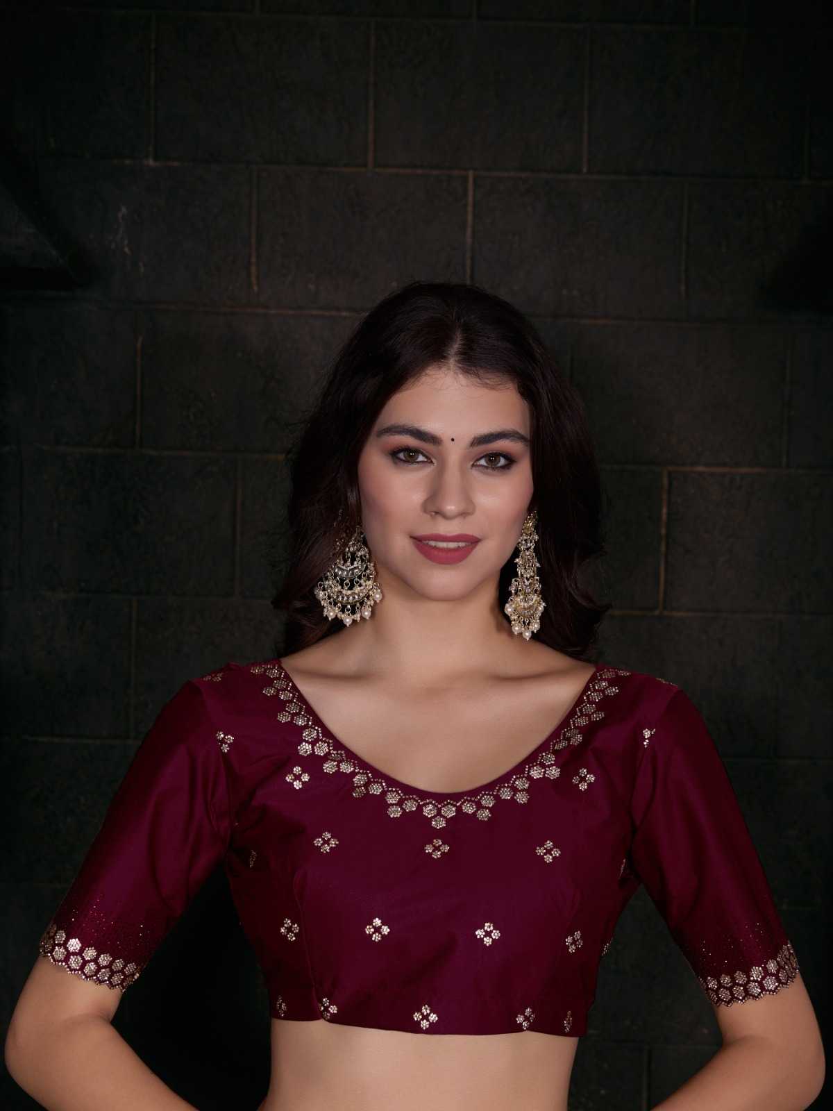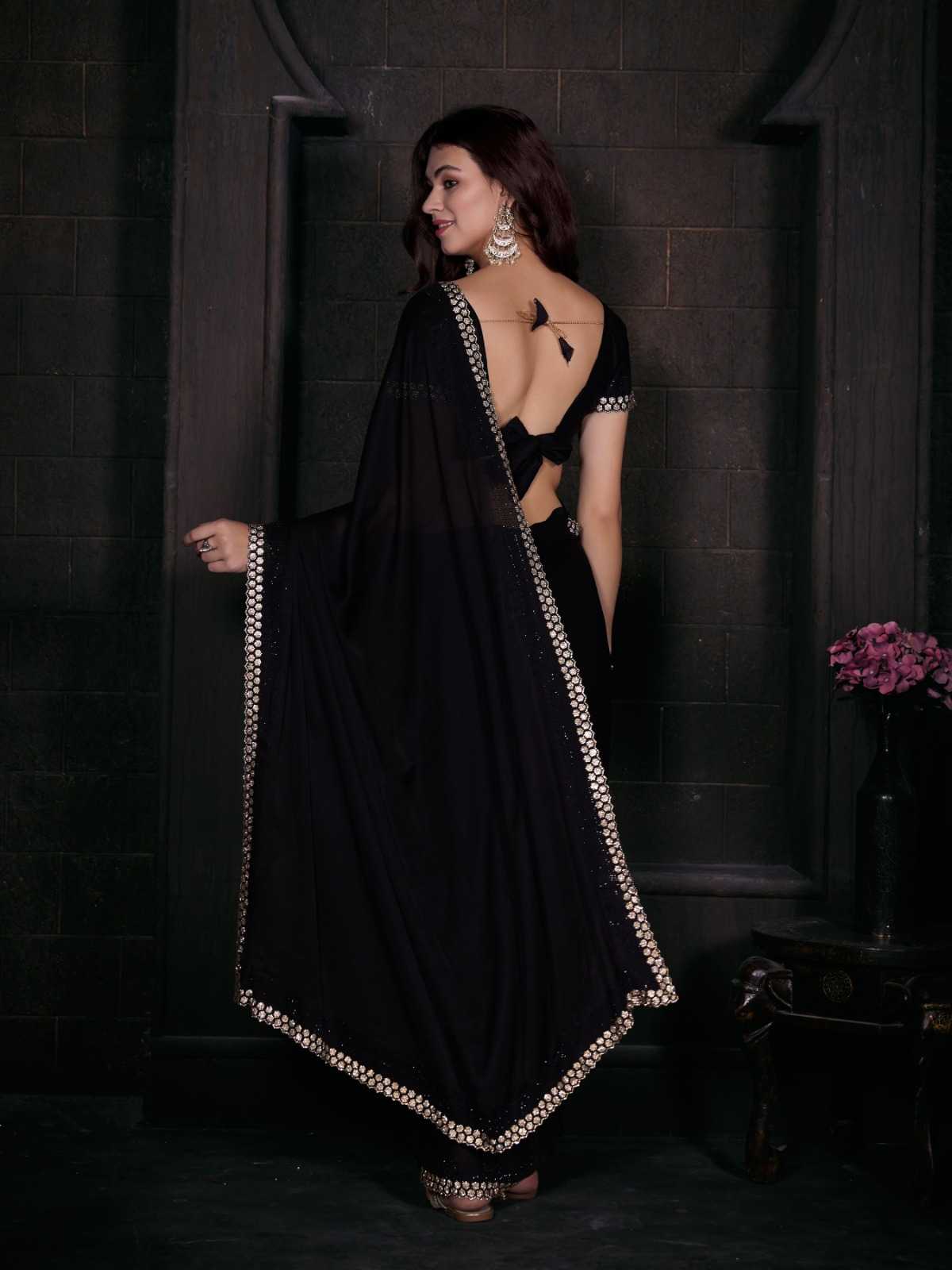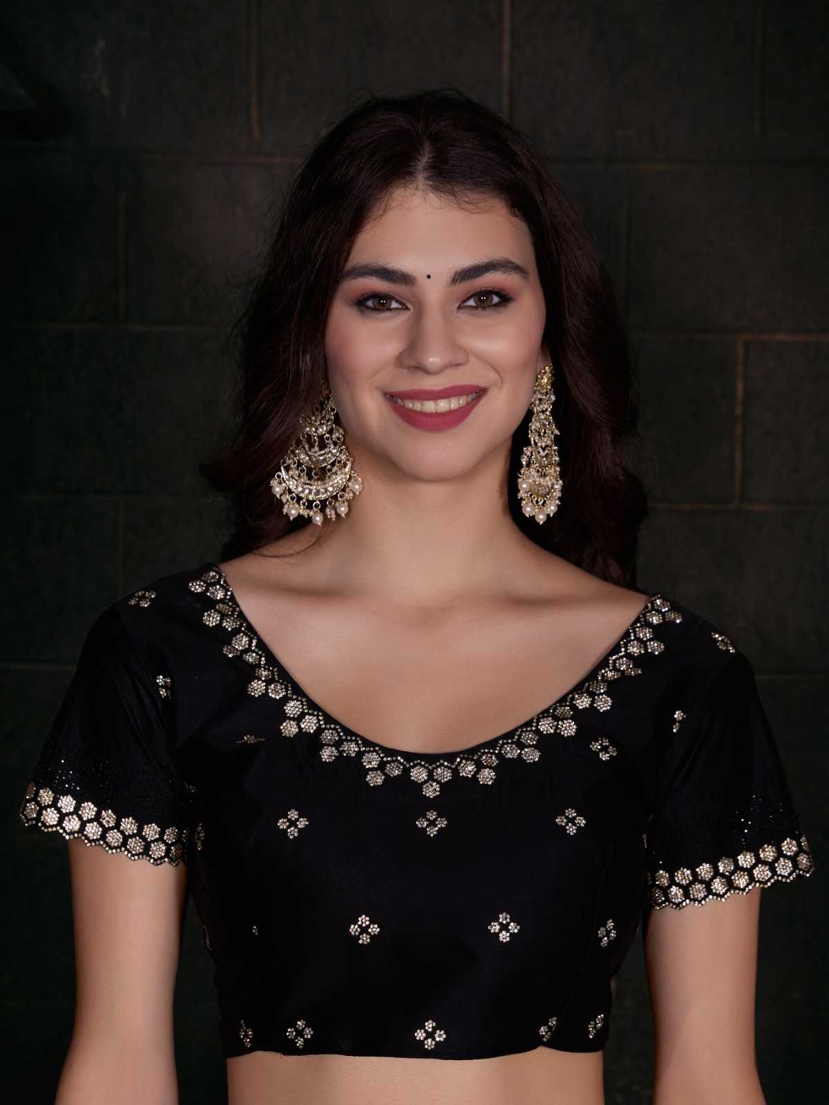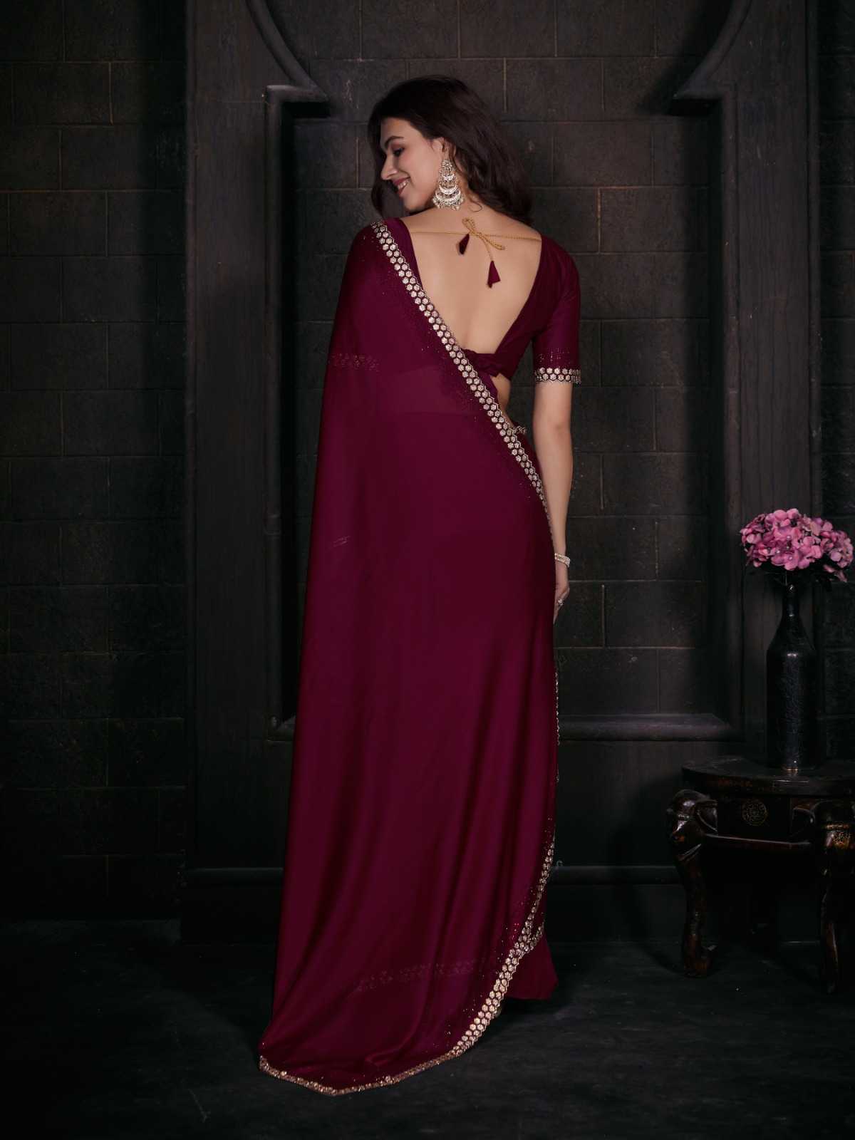Brand Name – Mehak Catalog : Mahek D.No. 748A To 748F Colour 6 FABRIC: Pure Satin Georgette Blooming Fabric with Heavy Handwork Zircon Cutwork Border ] Same Fabric Running Blouse with Heavy Zircon Work and Belt Rate : 2795/- Gst 5% Extra Occasion : wedding, party ,event |