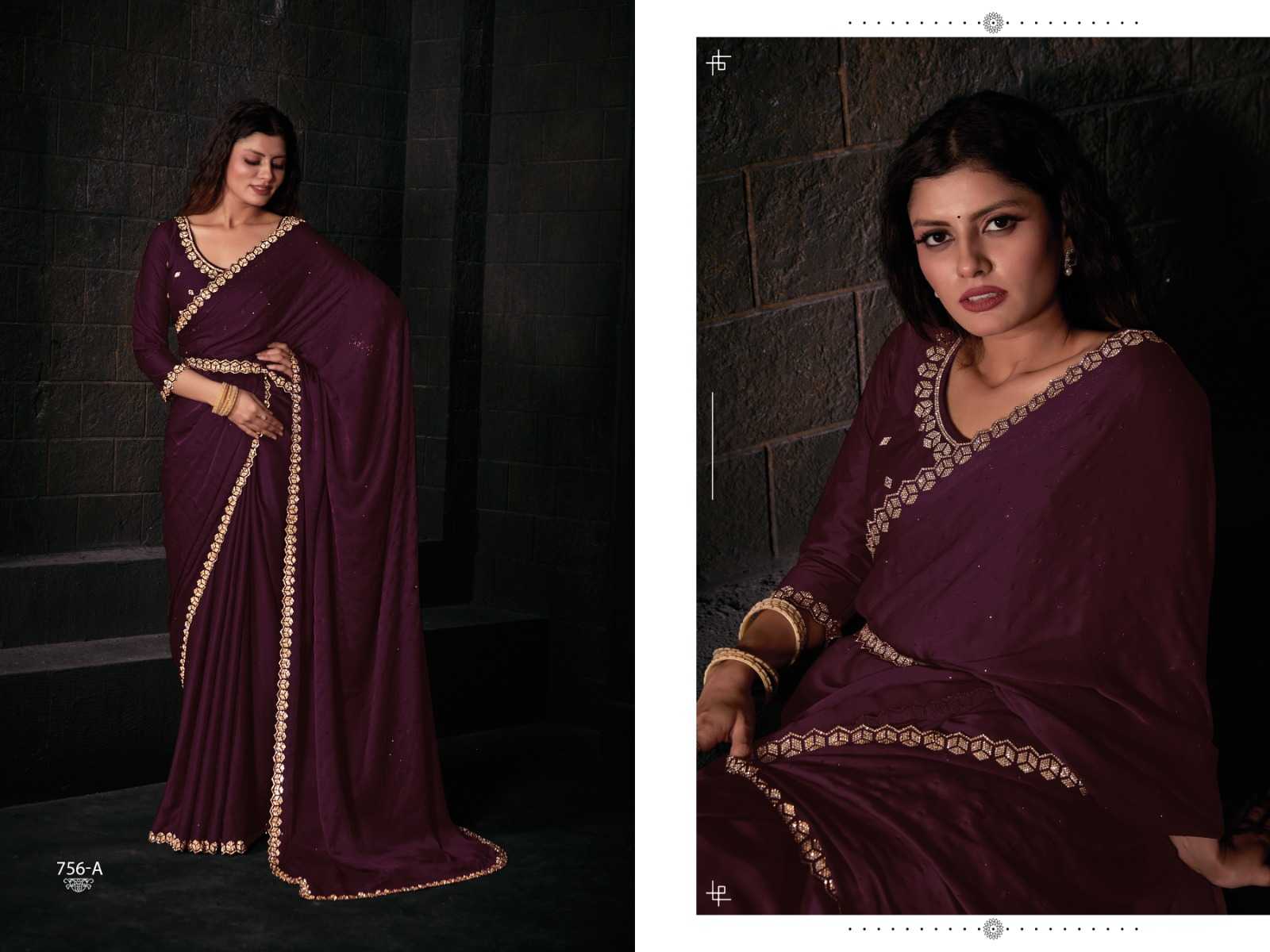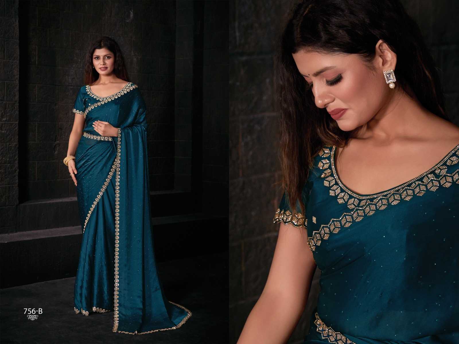 mehak 756a-756f latest party wear satin georgette with handwork saree wholesaler