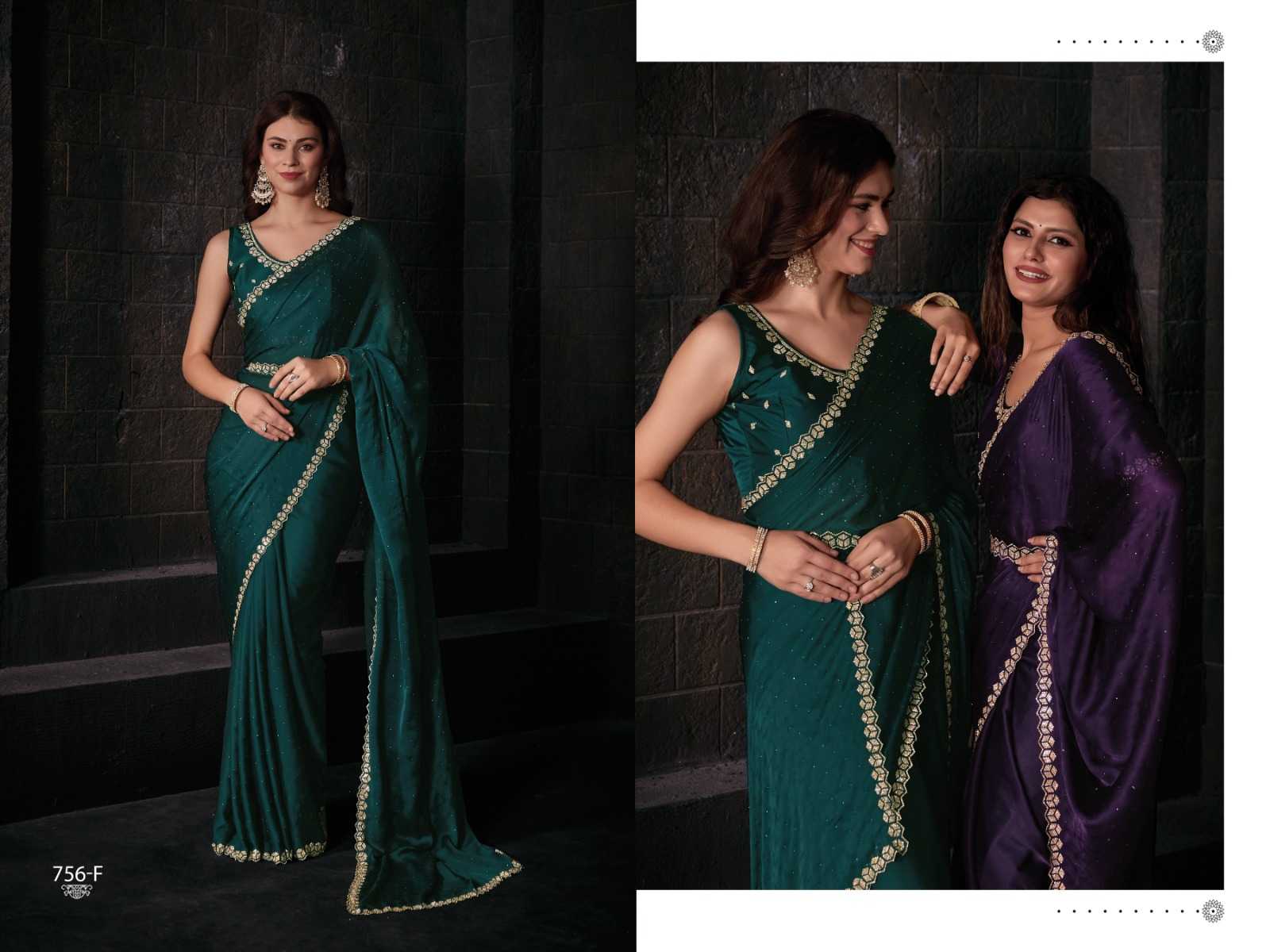 Brand name - MEHAK SAREES SERIES– 756 A - F Total colours - 6 PRICE - 2495 Pure Satin Georgette Blooming Fabric with Heavy Handwork Zircon Cutwork Border Same Fabric Running Blouse with Heavy Zircon Work and Belt |
