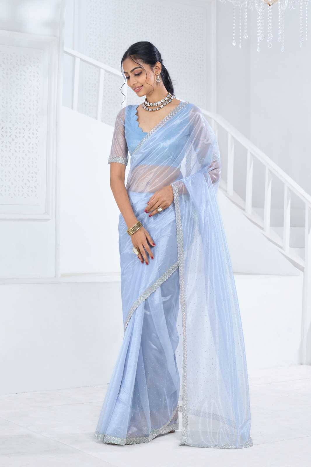 Brand name - MEHAK SAREES SERIES– 811 A - E Total colours - 5 PRICE - 1495 twirll soft organza with heavy swroski work blouses heavy handwork border and swroski in all over saree |