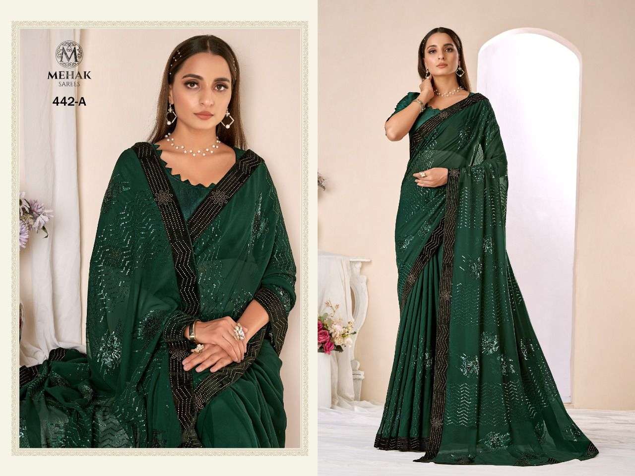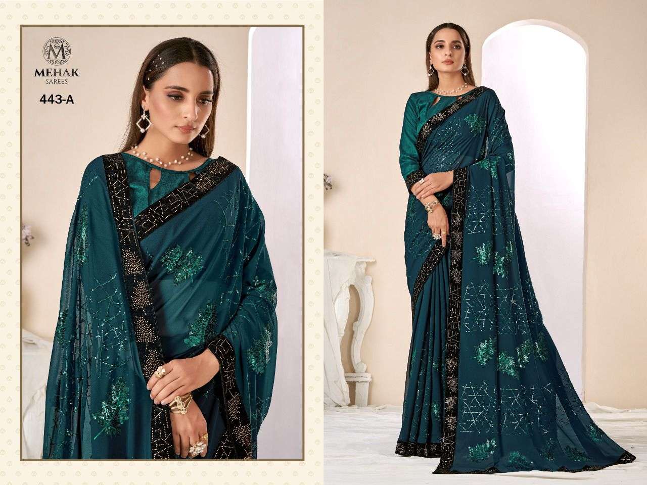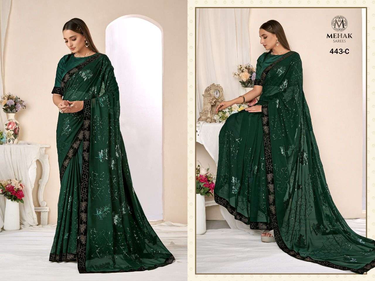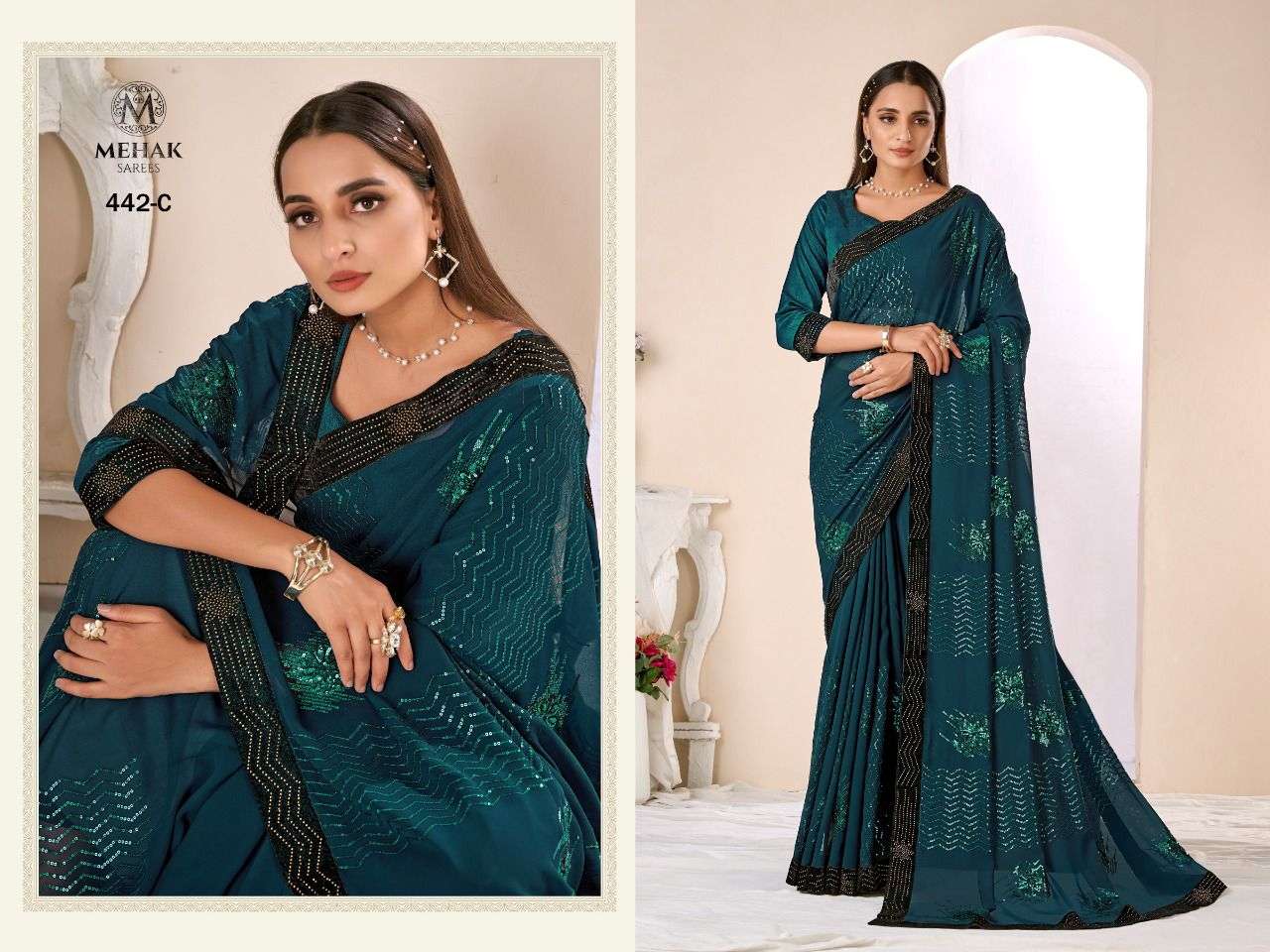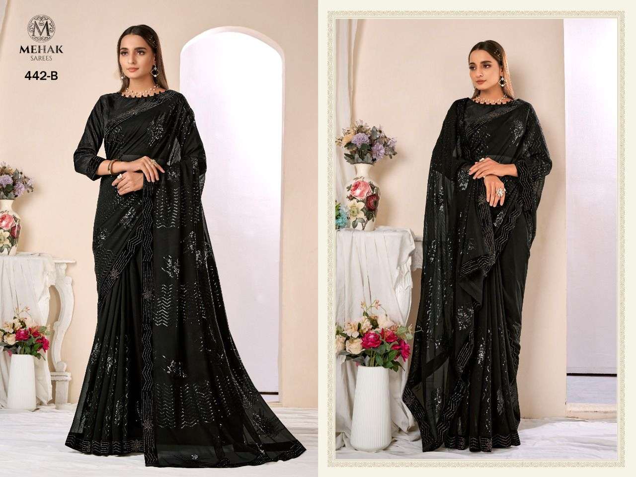 mehak ranjana 442 445 design georgette sequence work fancy sarees with stitching facility available