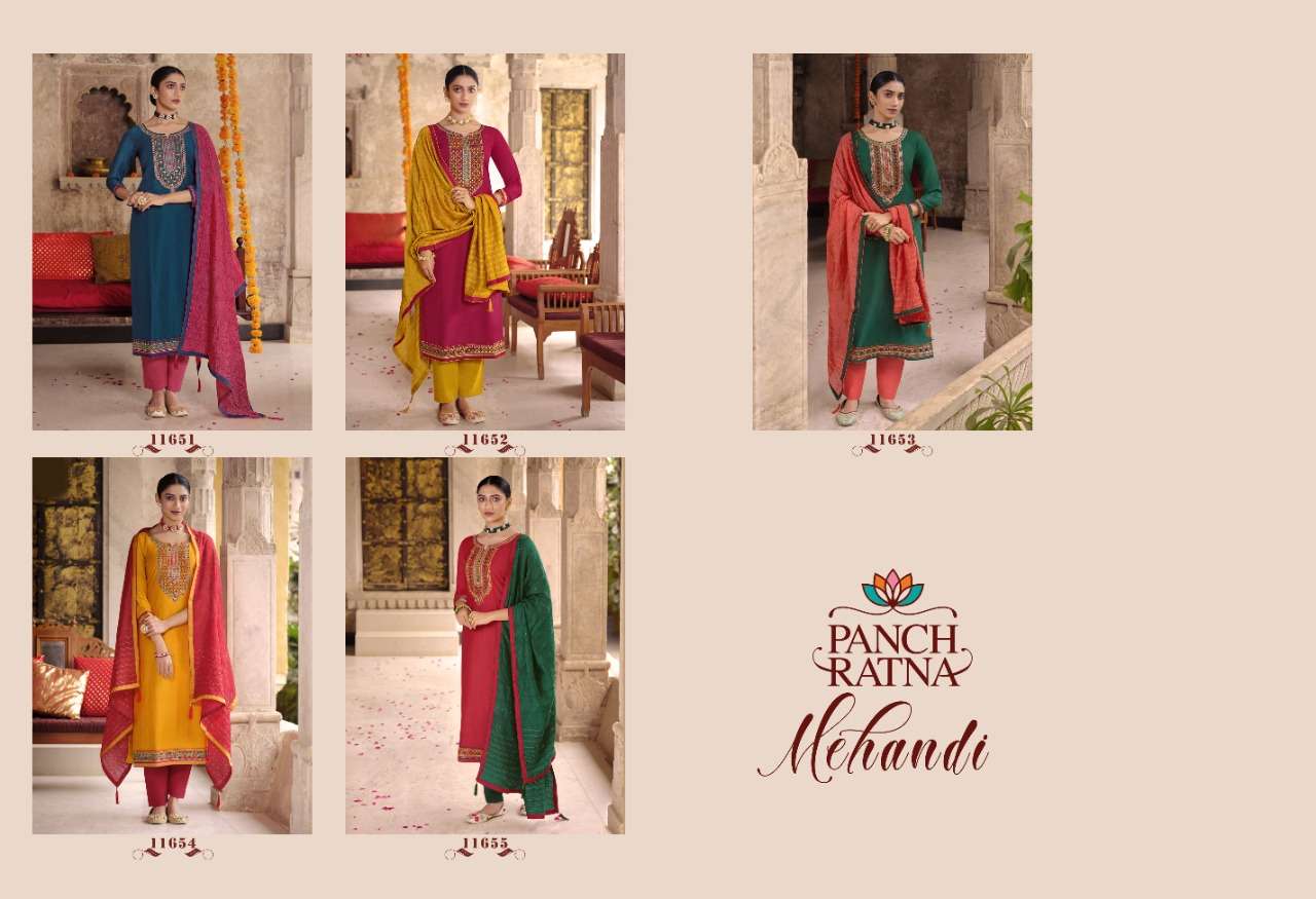 mehandi by panch ratna silk embroidery fancy dress materials