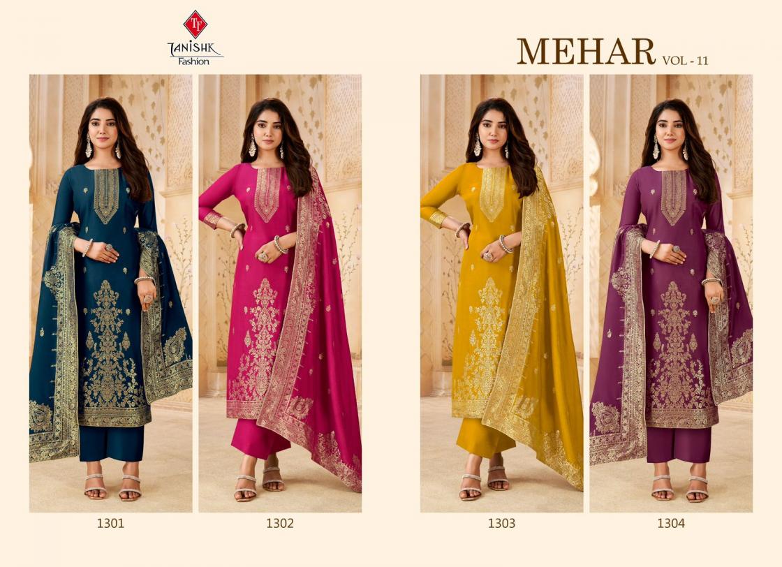 mehar vol 11 by tanishk fashion naari muslin jacquard unstitch 3pcs dress