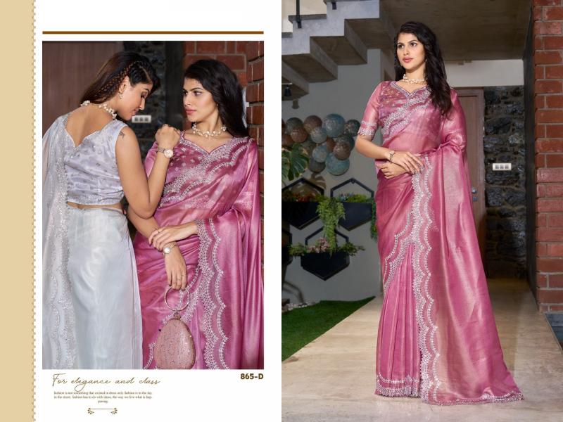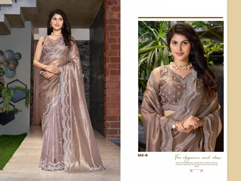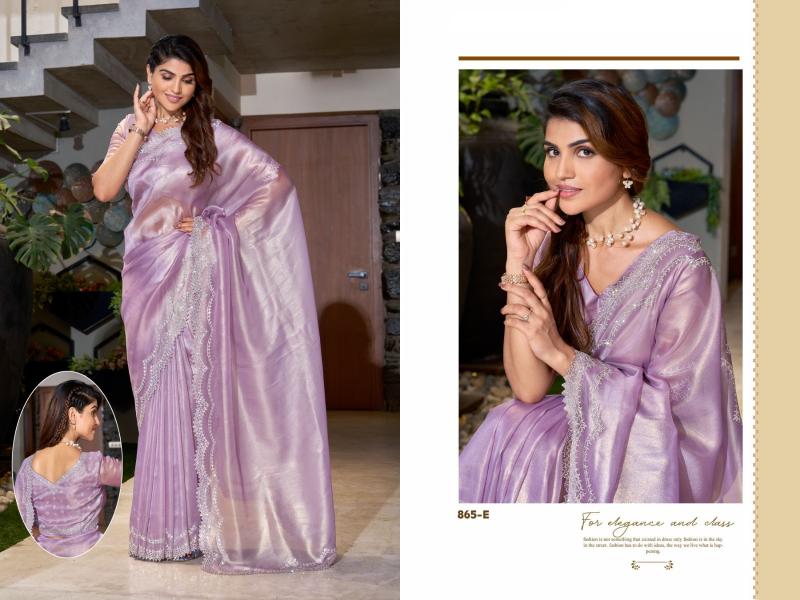 Brand : Mehek Saree Catalog Name : 865 SERIES Series: 865A TO 865E Saree Fabric : Raina silk Super Coat Handwork Jarkan Work Blouse Fabric : Silk With Zarkan Work Occasion : Festival Wear, Party Wear |