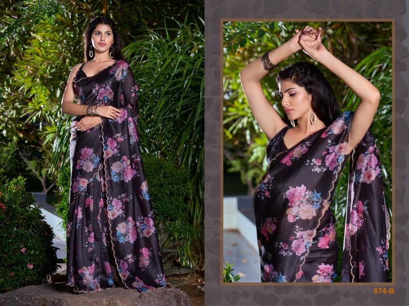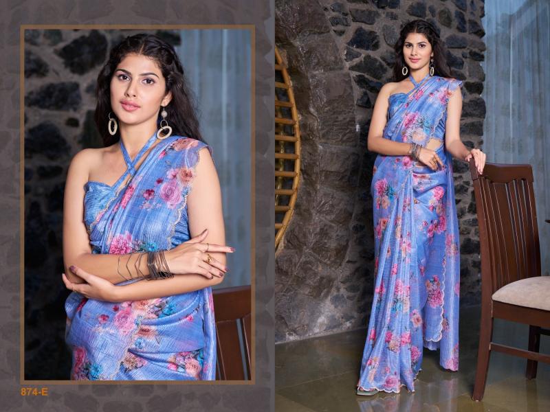 Brand : Mehek Saree Catalog Name : 874 SERIES Series: 874 A TO 874F Saree Fabric : Crush Digital Print With Zarkan Work Border Saree Blouse Fabric : Runnig Crush Fabric Occasion : Festival Wear, Party Wear |