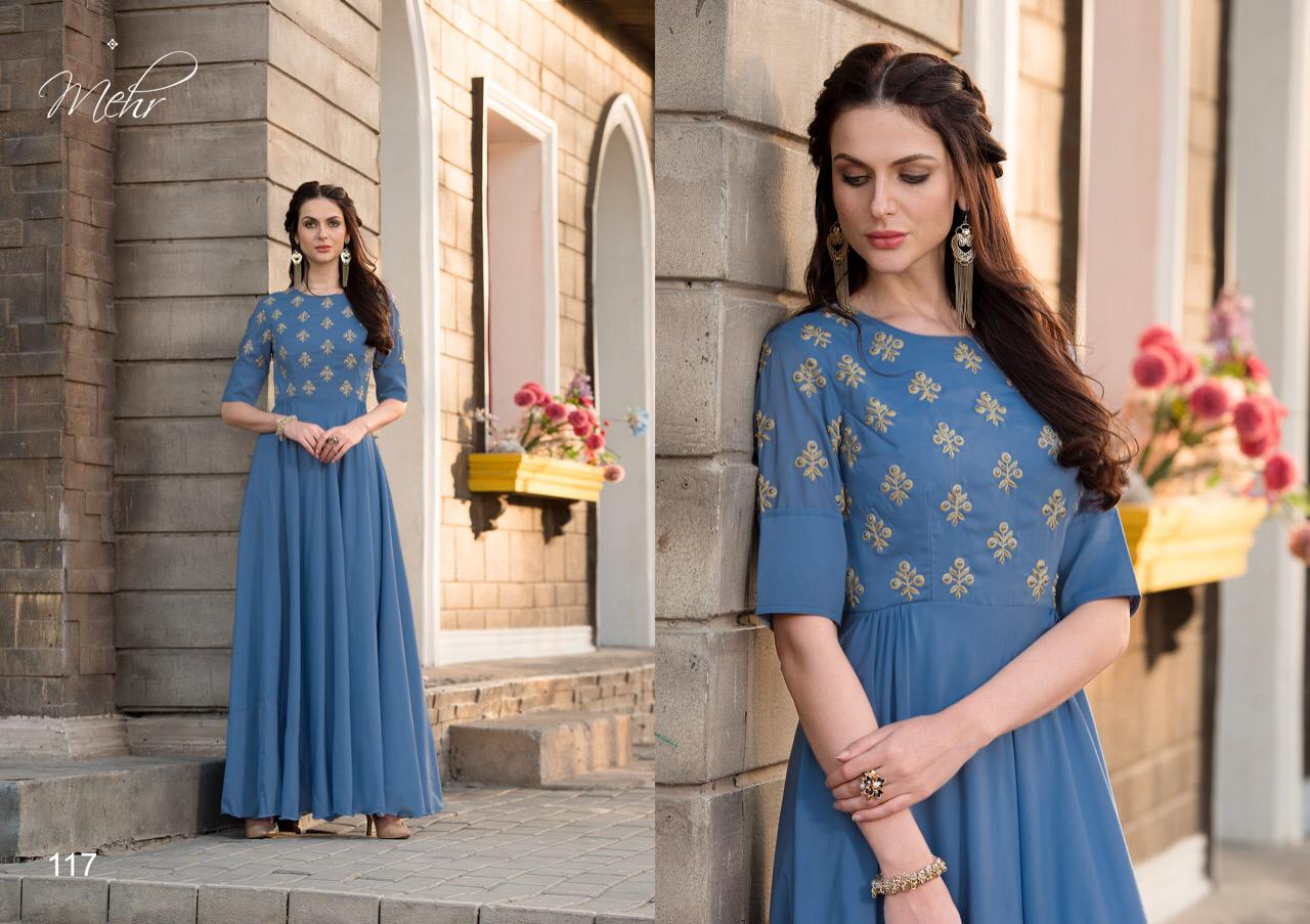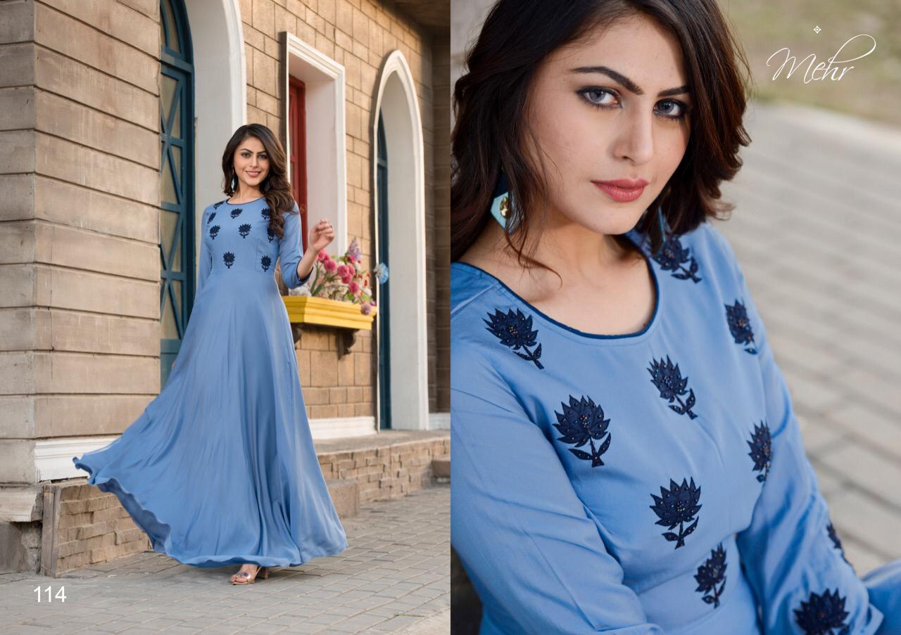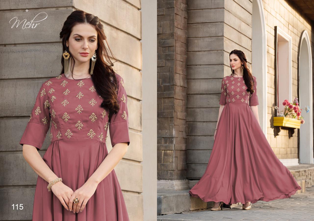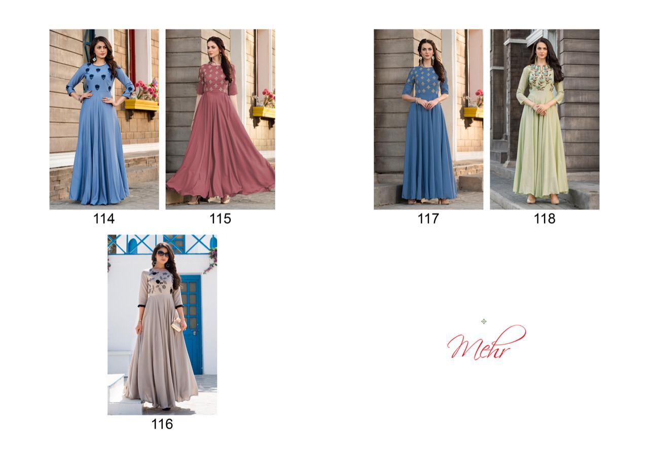 Mehr Vol 4 By Mugdha 114-118 Series Gown Style Long Kurtas Wholesaler