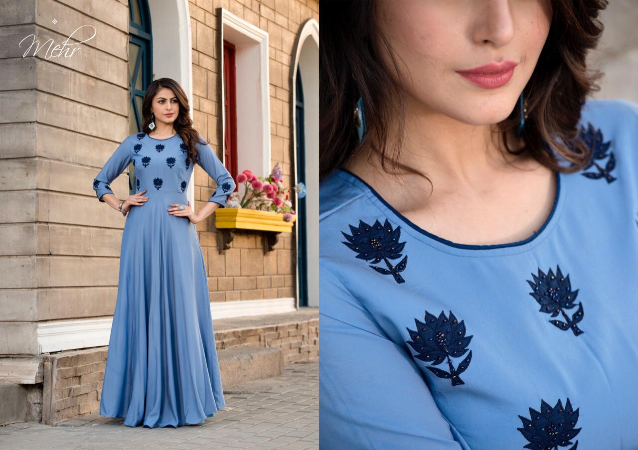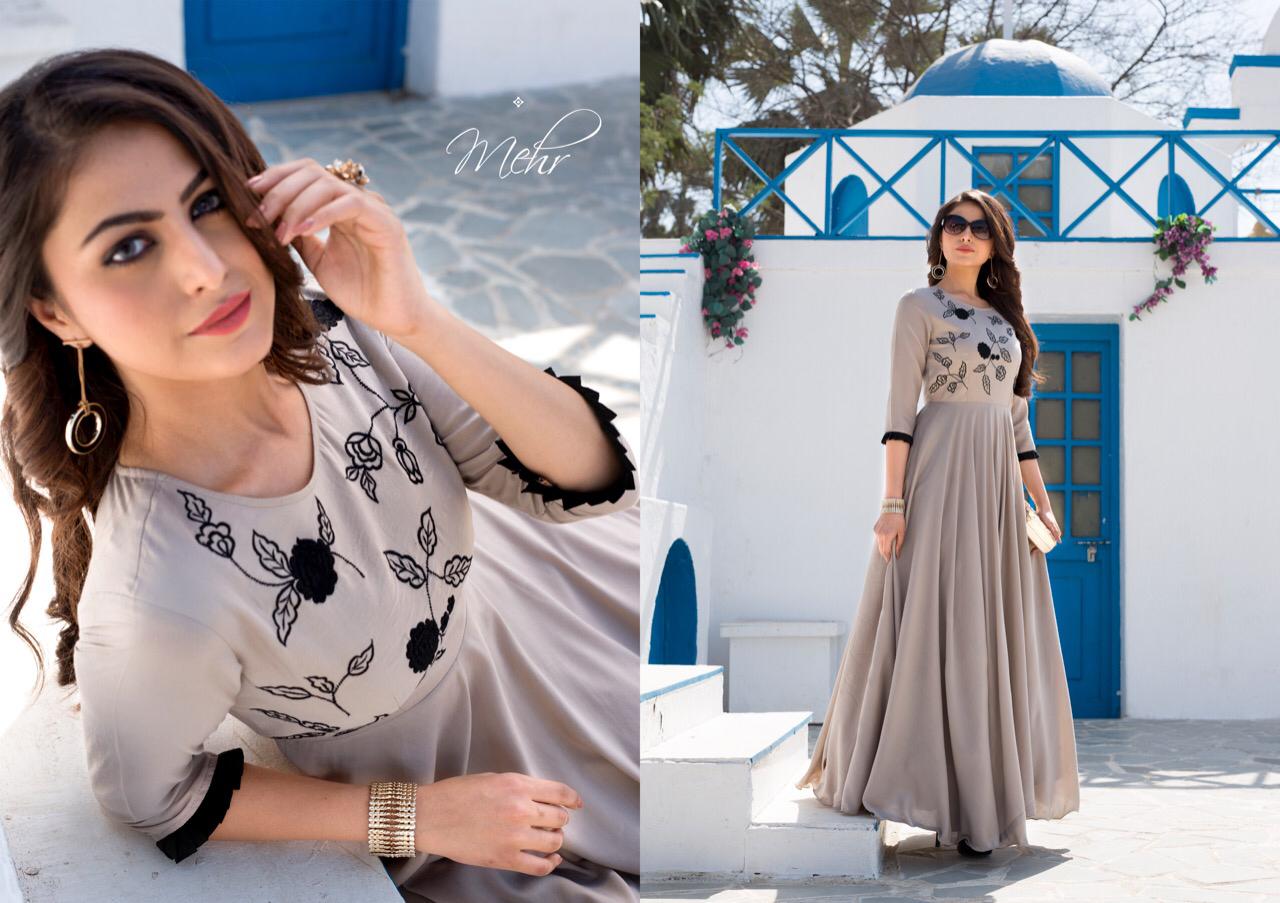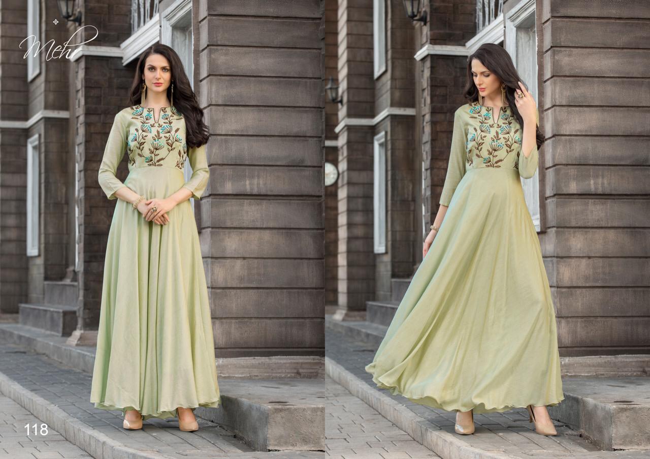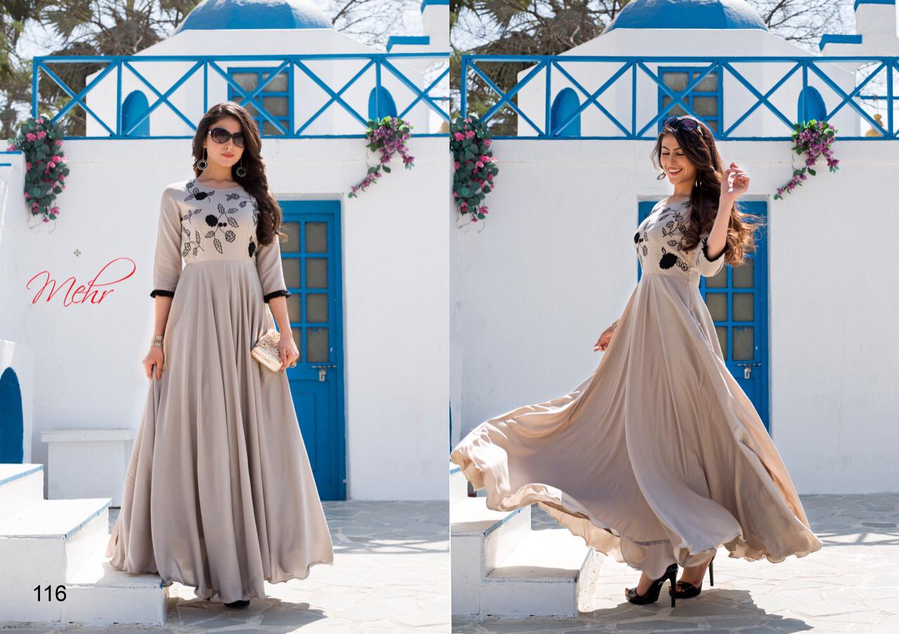 Mehr Vol 4 By Mugdha 114-118 Series Gown Style Long Kurtas Wholesaler