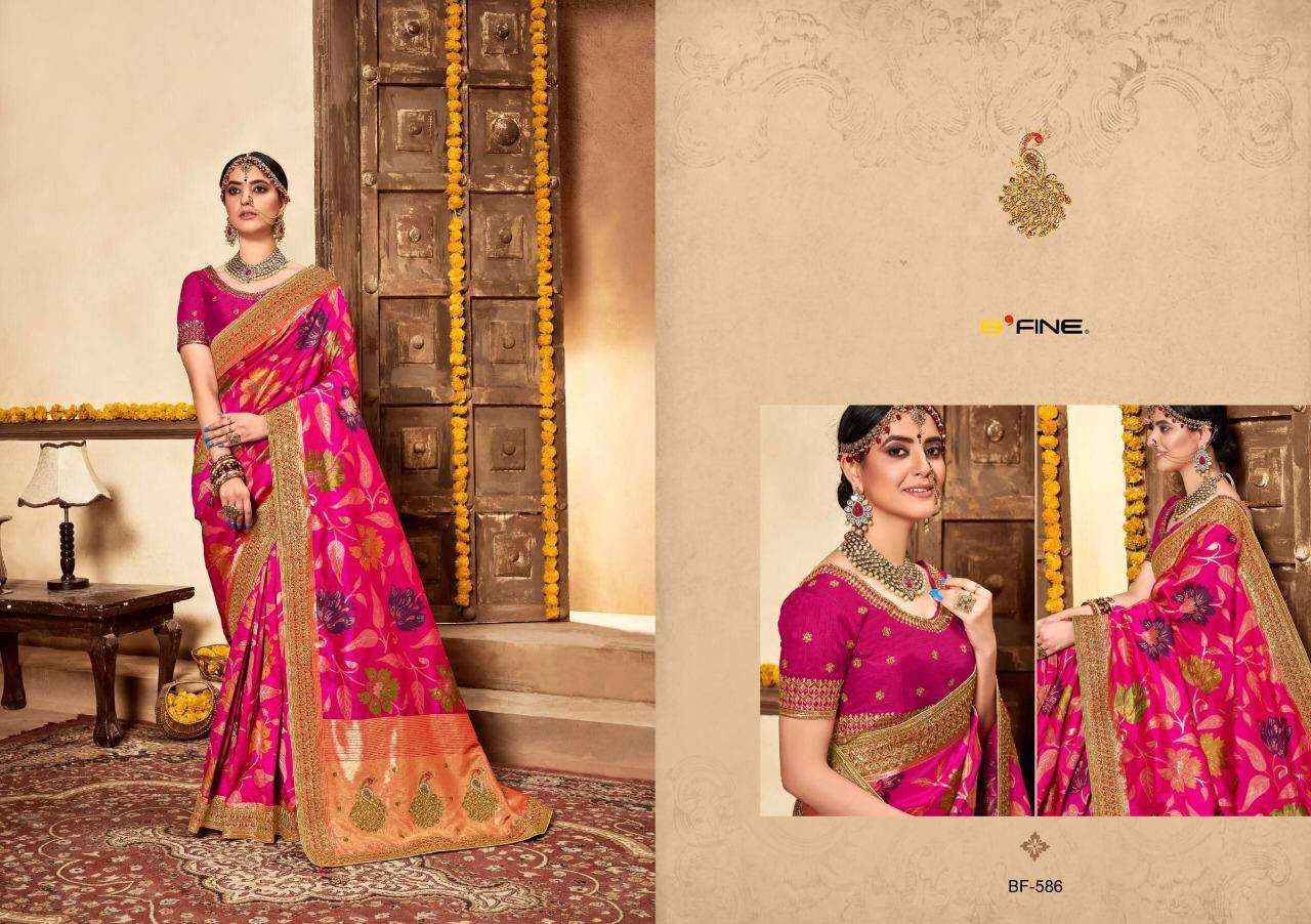 Brand - B fine . Catlog name - MEHRAAB . Series - 581 to 586. Fabric- Silk . Delivery from today ONLY SET TO SET AVAILABLE PRICE LIST HAS ATTACHED |