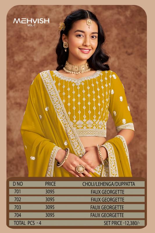 mehvish launch mehvish vol 7 701-704 georgette unstitch traditional chaniya choli