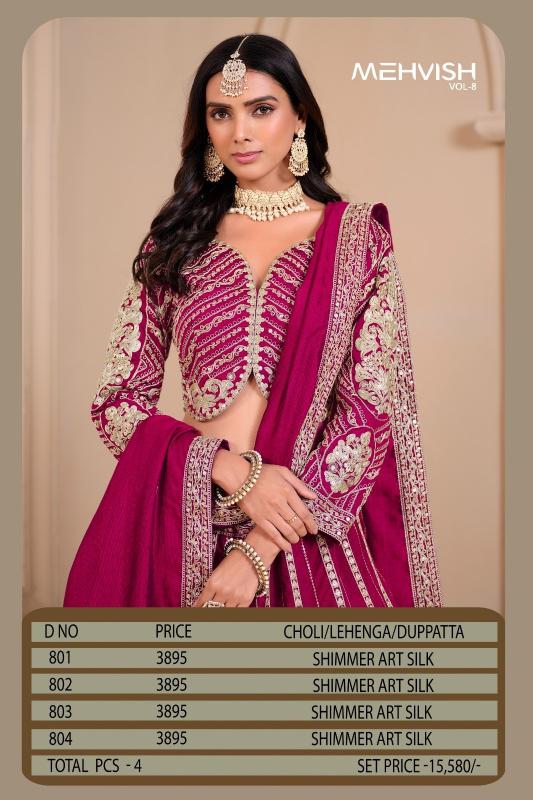 mehvish vol 8 by mehvish exclusive shimmer art silk wedding festivals lehenga choli