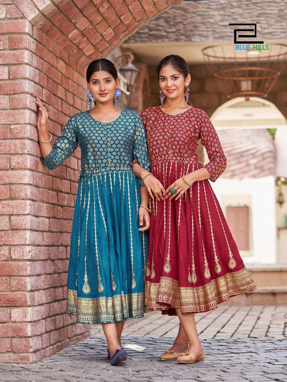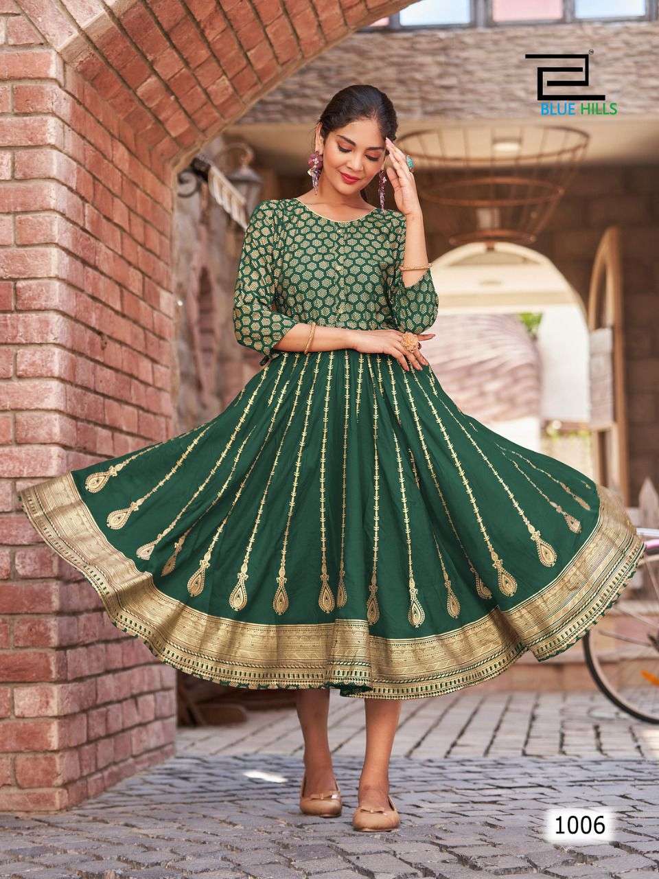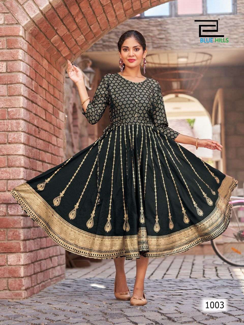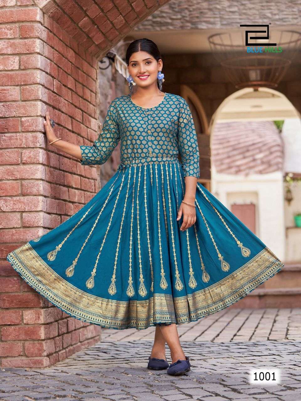 #BLUE HILLS Fabric : RAYON 14KG FOIL PRINT Flair - 5 MTR+ Size : M(38) L(40) XL(42) XXL(44) 3XL(46) Length/ 47+ Rate - 725+GST 6 PCS CATALOG BOOKINGS OPEN Limited stock Dispatch - Monday |