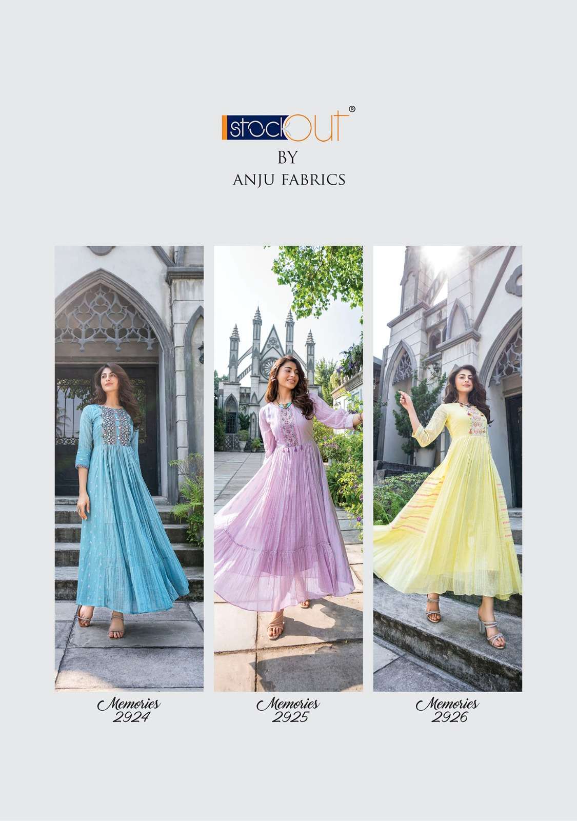 memories vol 4 by anju fab beautiful fancy work readymade long flared gowns