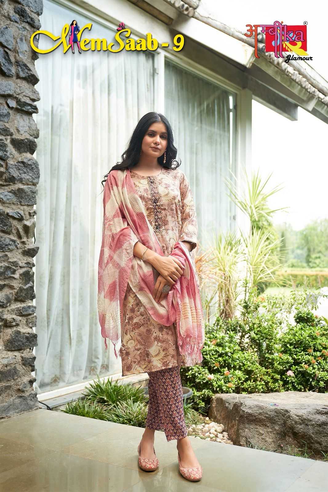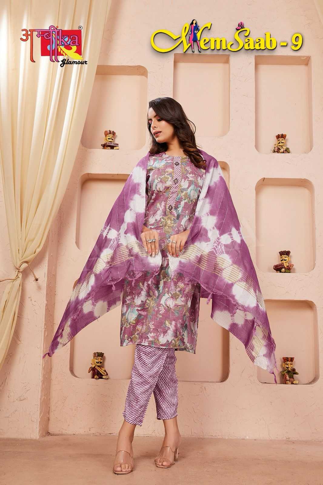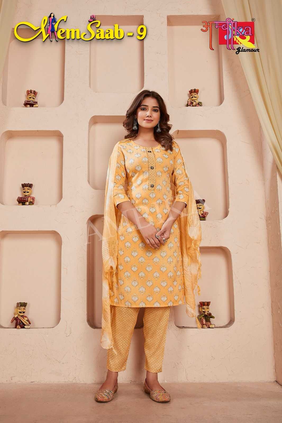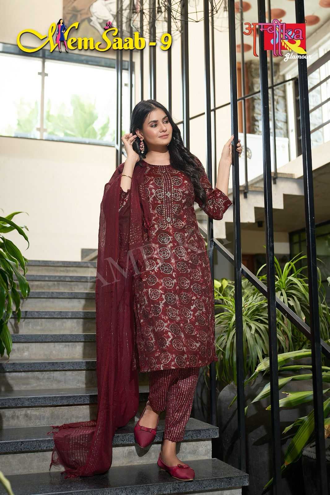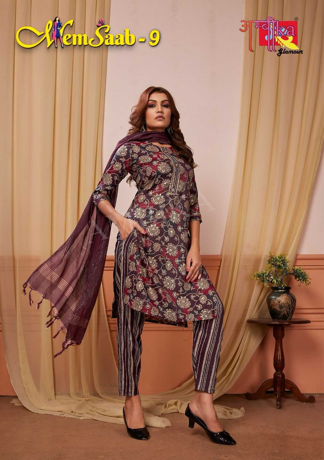memsaab vol 9 by ambika kurtis amazing fancy readymade salwar kameez combo set