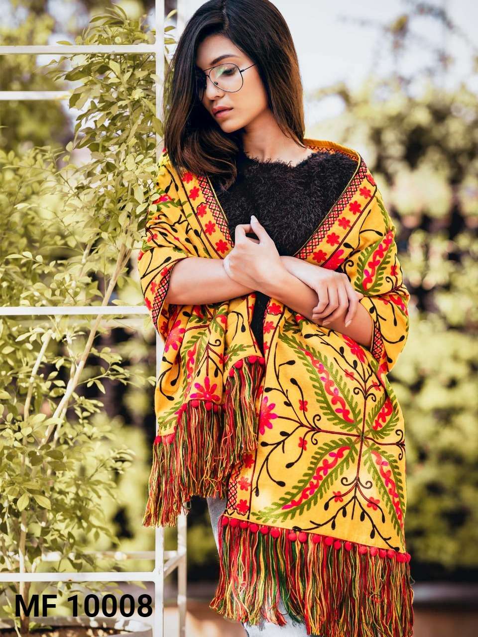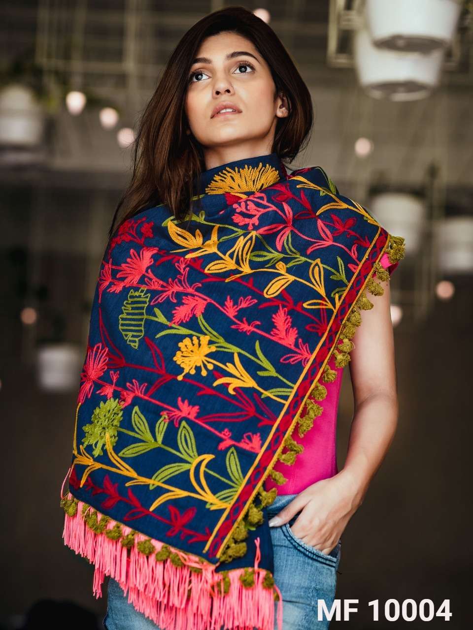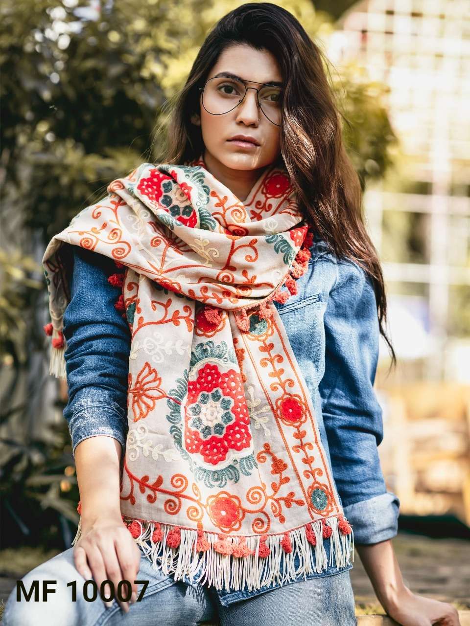 ❄️*Mesmora's Mufflers decorated with long woollen laces and pompom laces. The intricate big motif heavy embroidery design makes it unique and a complete handicraft product. Fabric Dimensions You can wear it on |