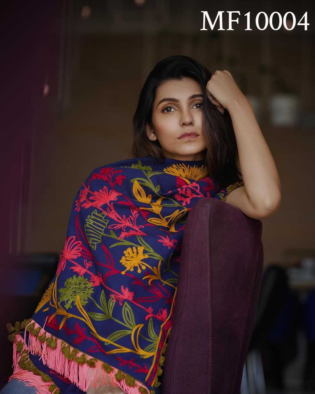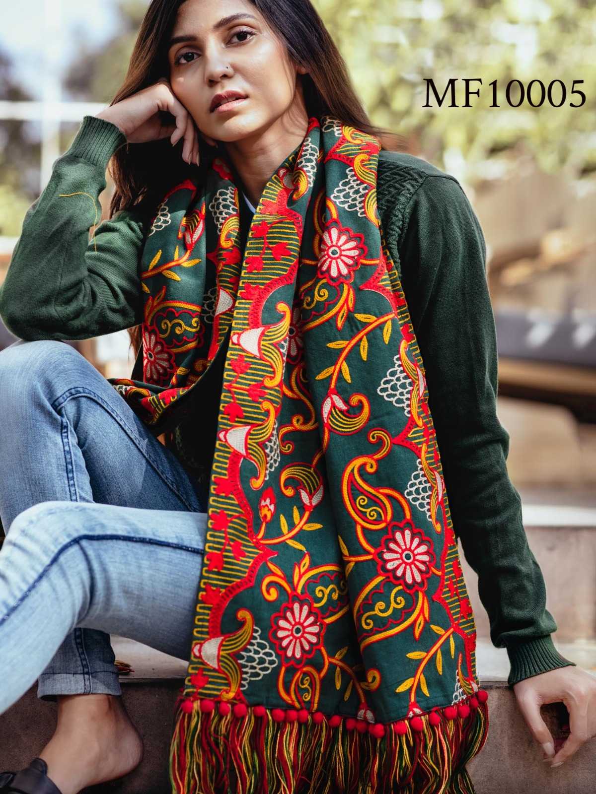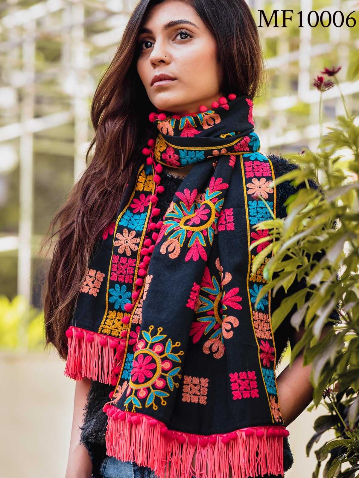 ❄*Mesmora's Mufflers decorated with long woollen laces and pompom laces. The intricate big motif heavy embroidery design makes it unique and a complete handicraft product. Fabric Dimensions You can wear it on Ready to dispatch |