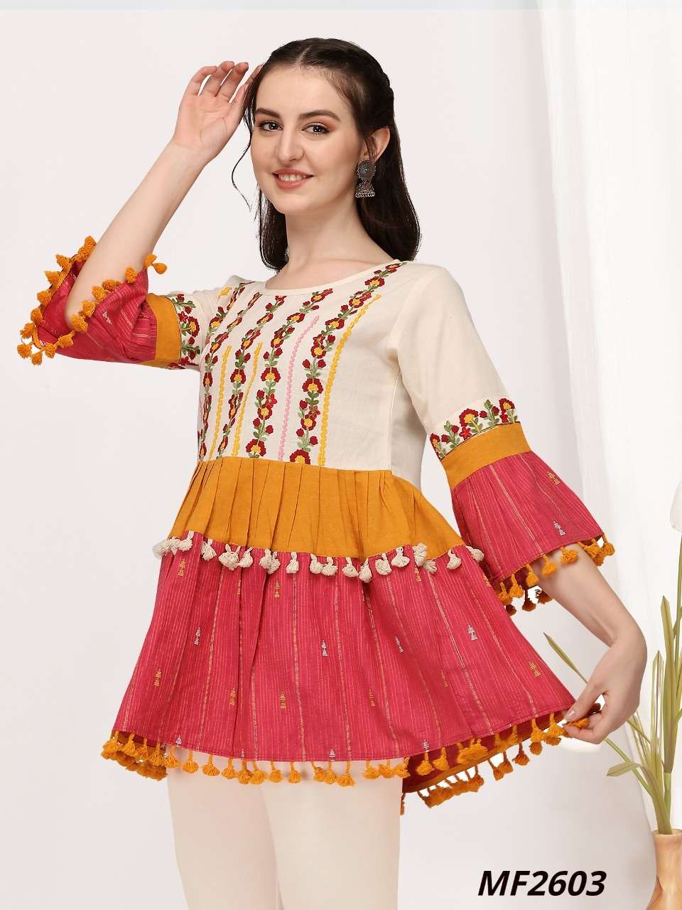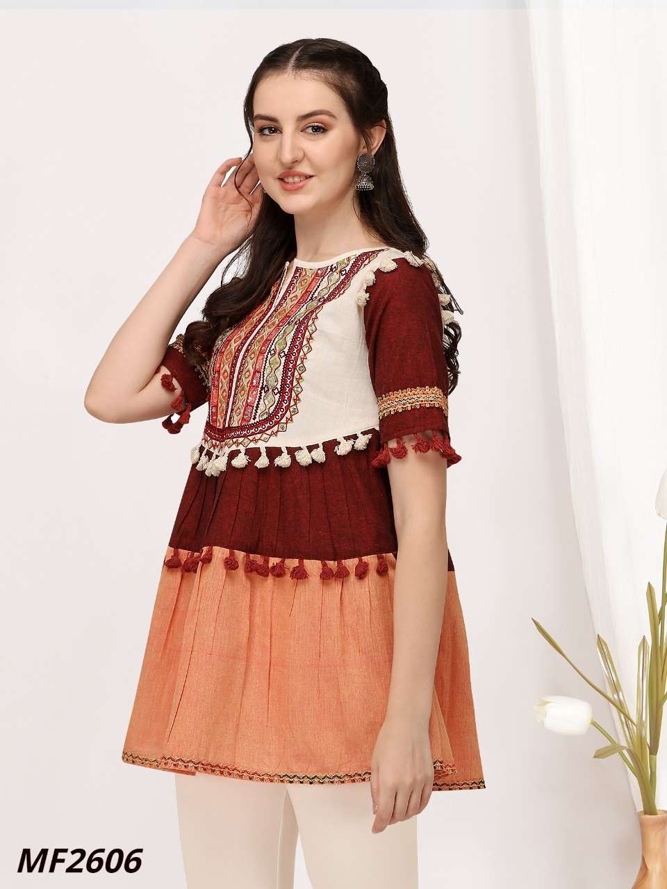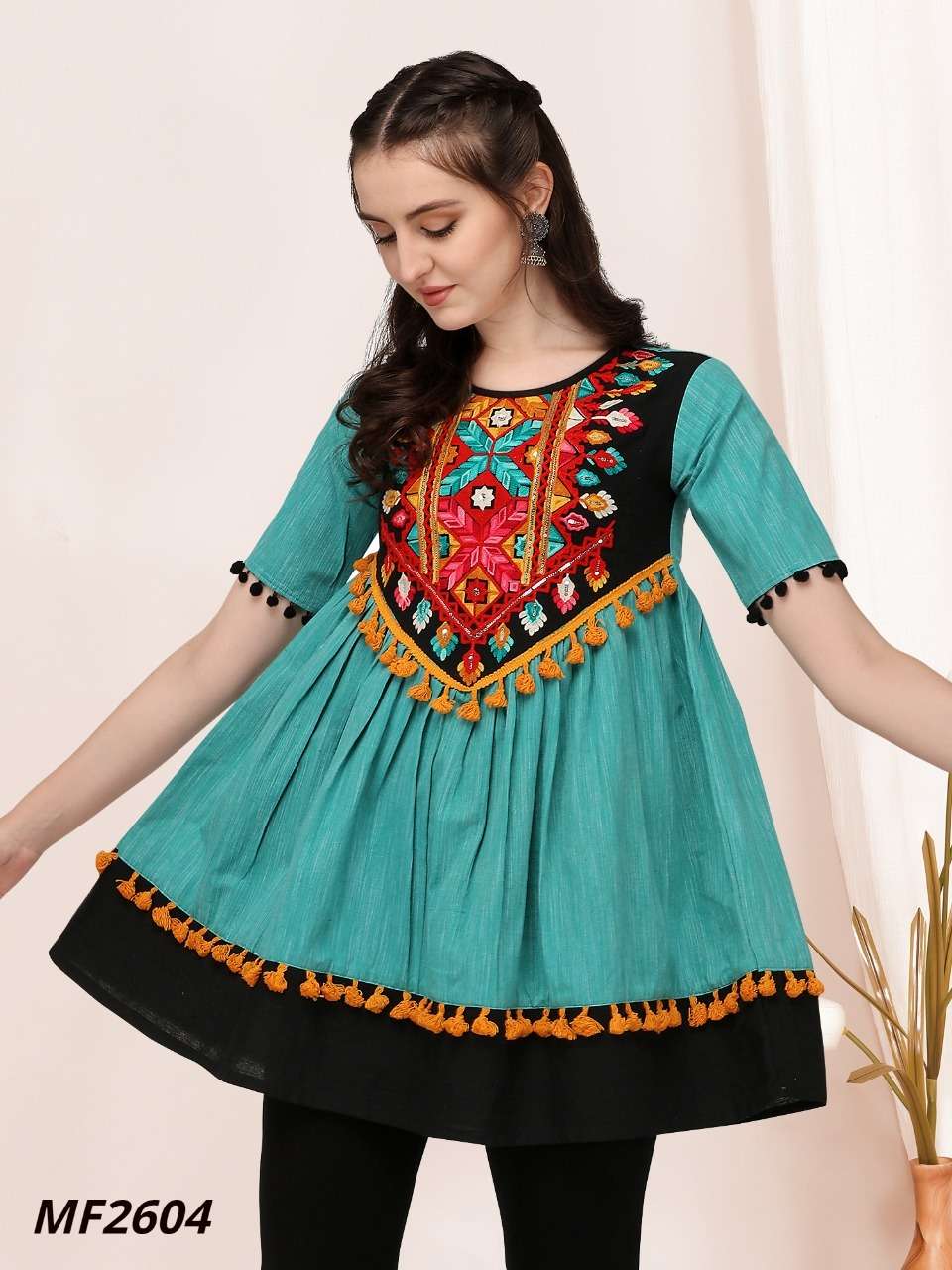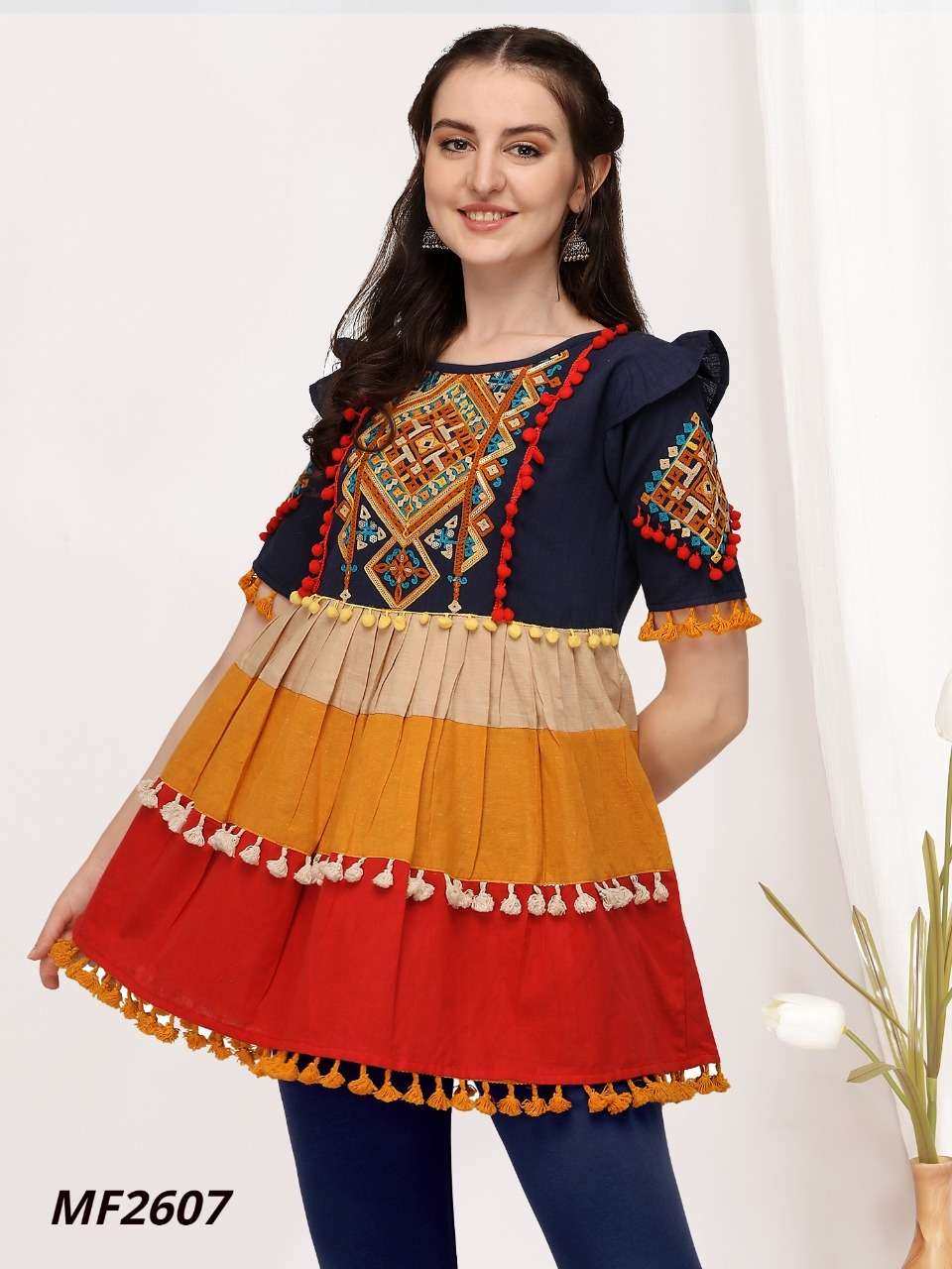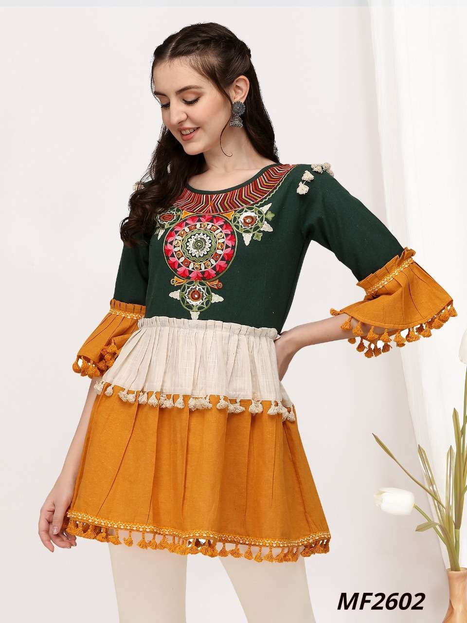 Mesmora We bring you the traditional art of Gujarat with modern motifs this time transformed in our selfmade silhouettes -✨LONG KEDIA TOPS TO PAIR WITH FLAIRY SKIRT, LEGGINGS, JEANS✨This navratri lets rock n rolls with a stream of colours, beautiful motifs, flowers, and gujarati folks. Fabric and Description Sizes length of kedia top 32”