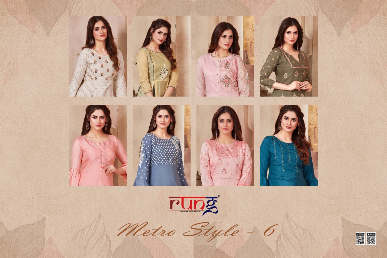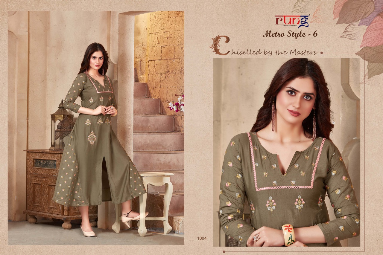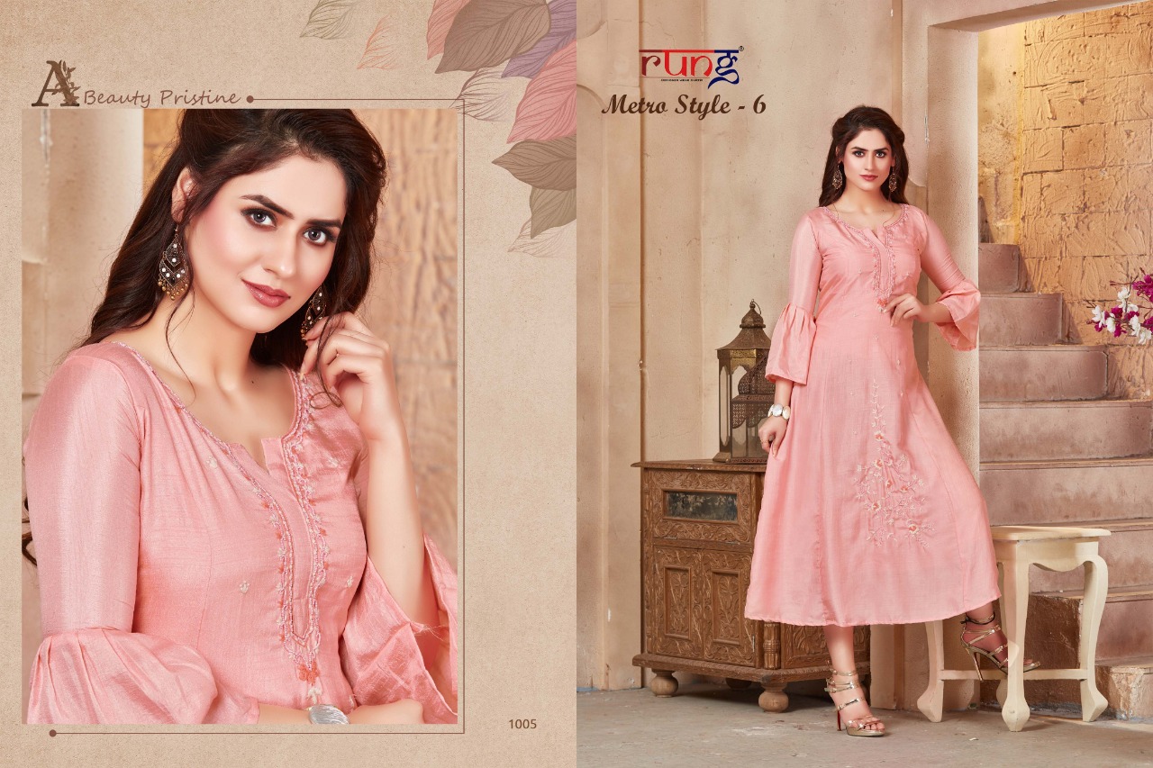 Metro Style Vol 6 By Rung Designer Party Wear Fancy Kurti Collection