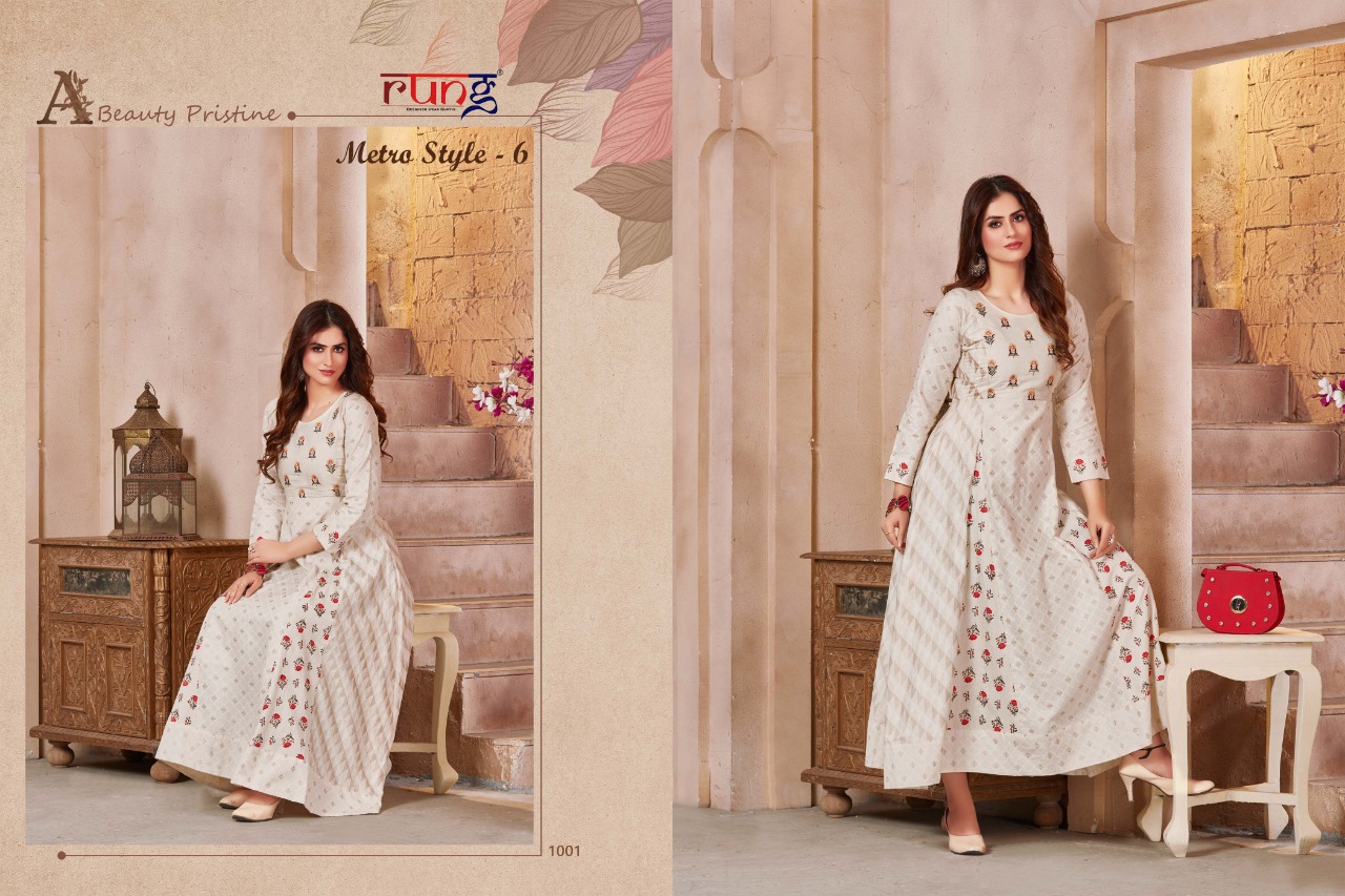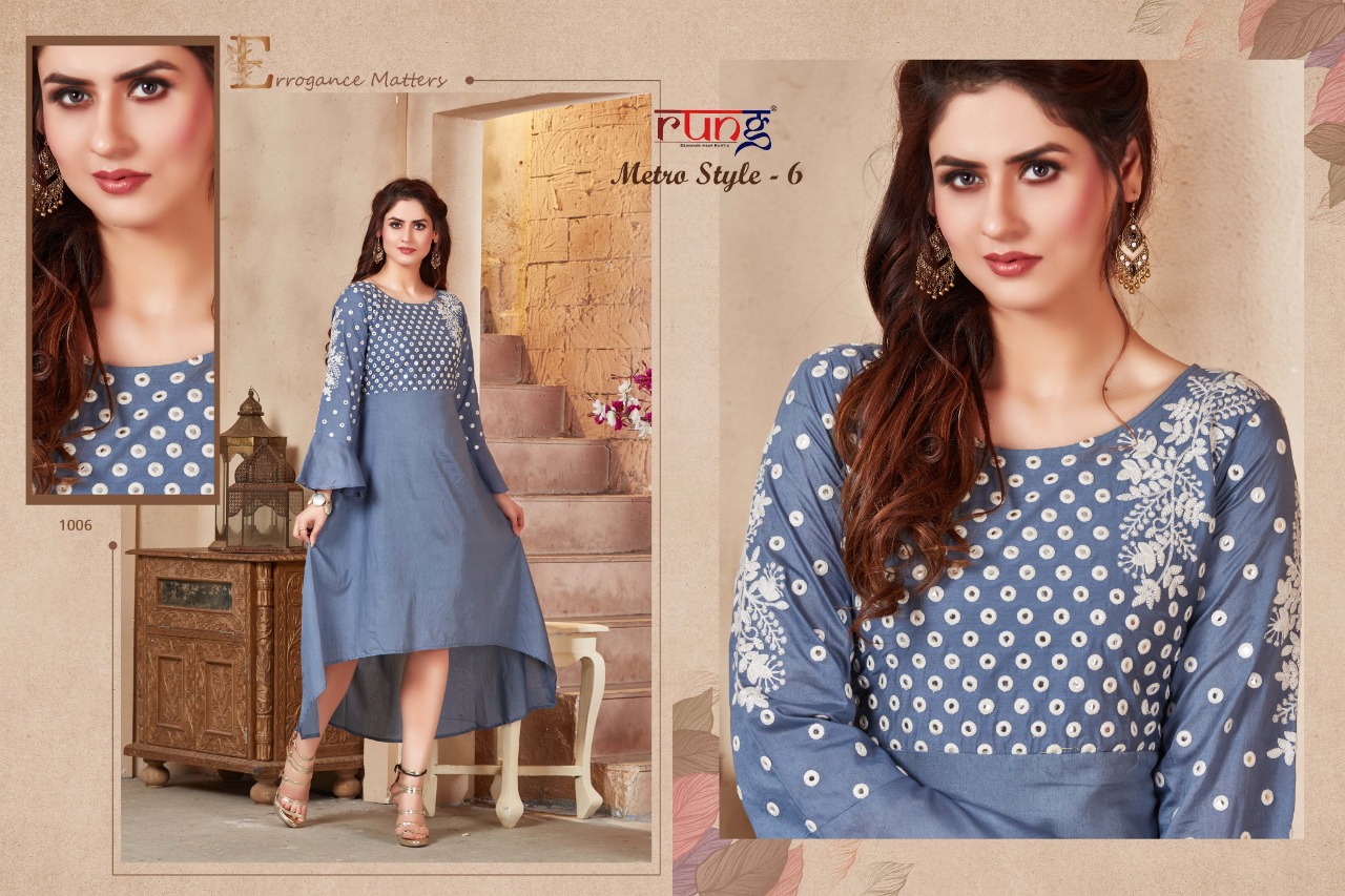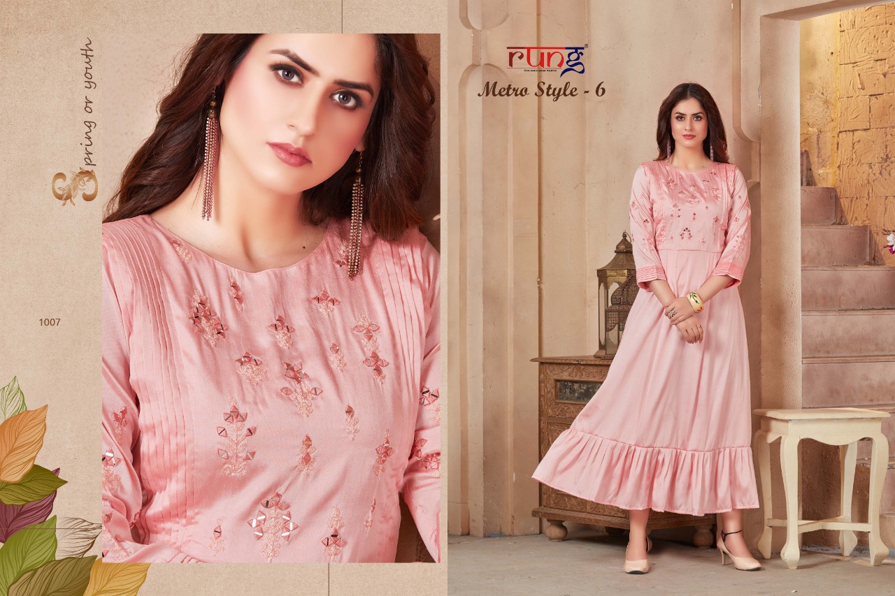 Metro Style Vol 6 By Rung Designer Party Wear Fancy Kurti Collection
