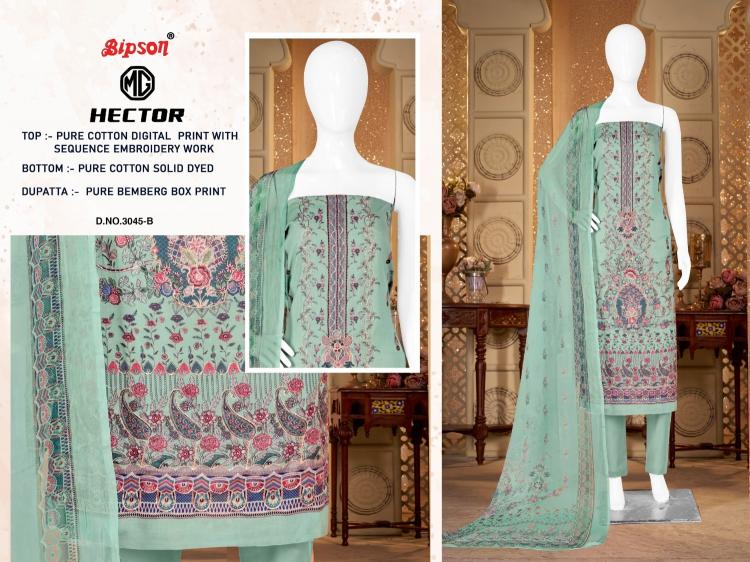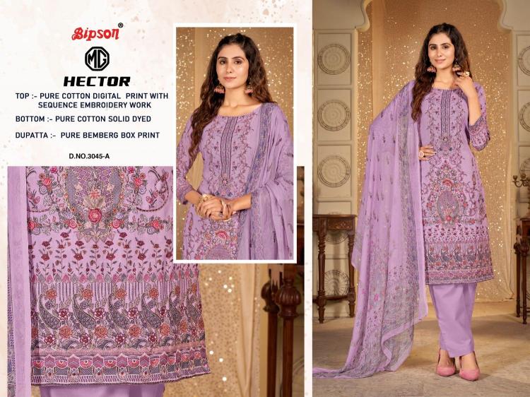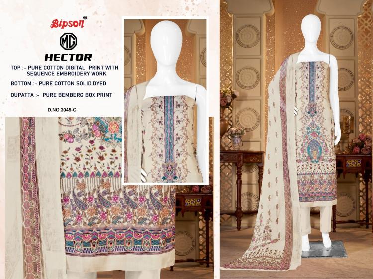 mg hector 3045 by bipson prints cotton colour addition 3pcs dress
