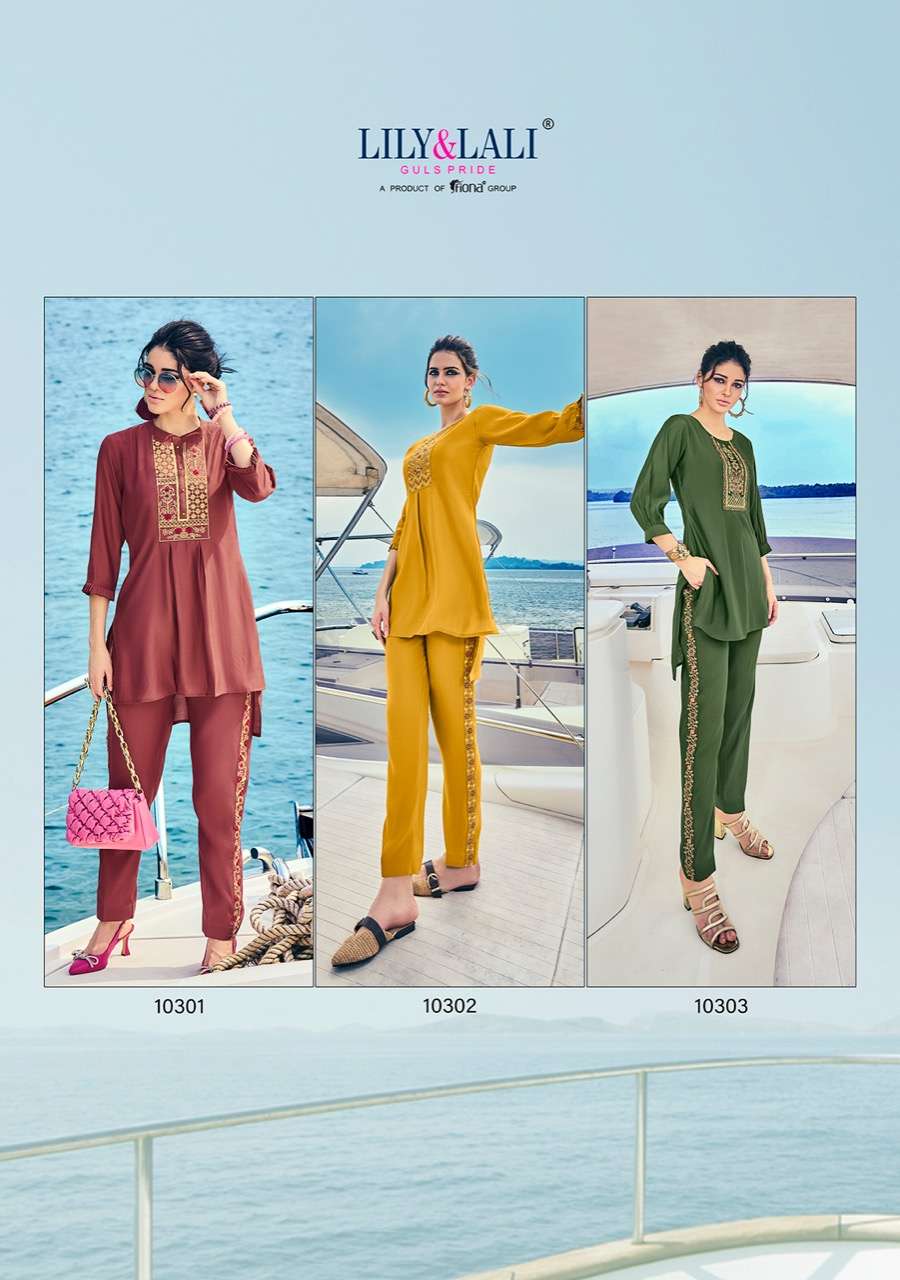 miami by lily & lali silk embroidery exclusive co-ord set collection