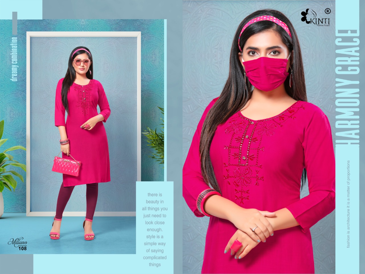 Millano By Kinti Rayon Simple Sobar Kurti With Free Mask Clothing Store In Surat