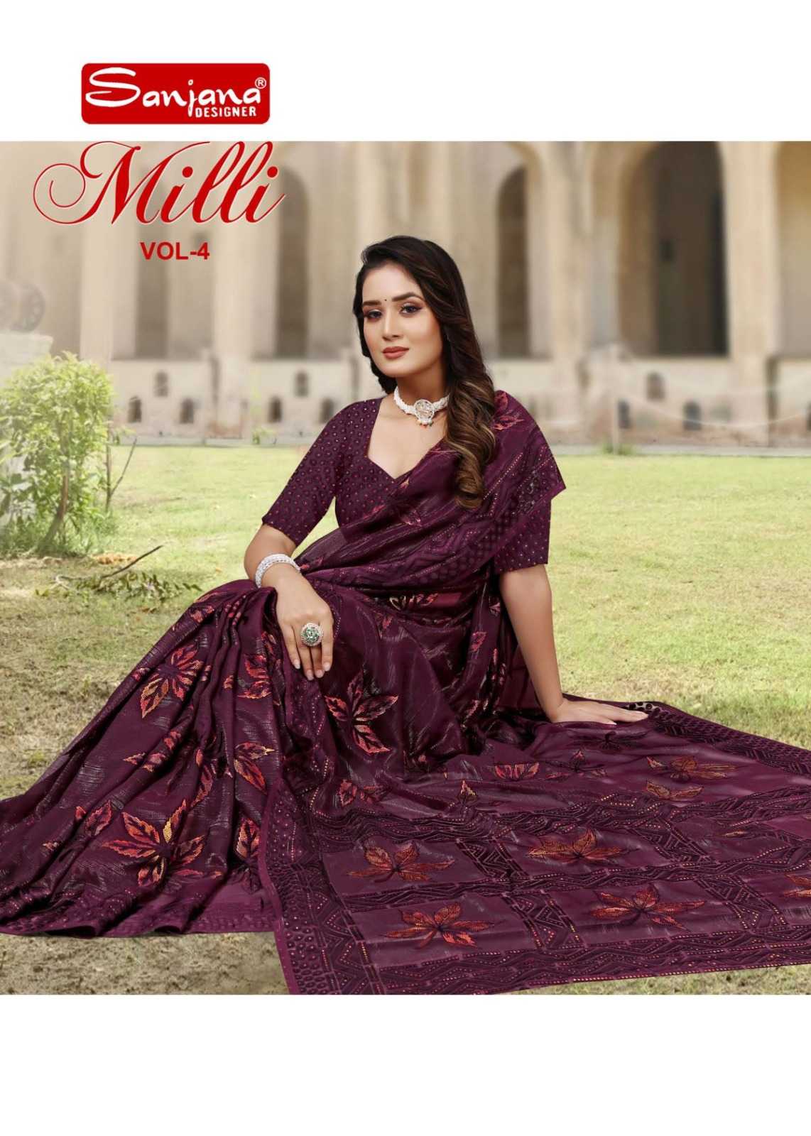 milli vol 4 by sanjana designer fancy simar original brasso foli print sarees