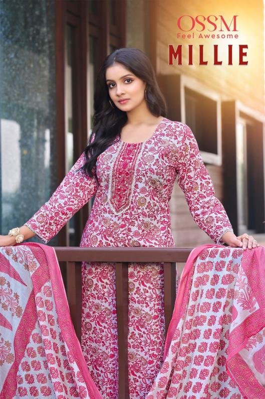 👏🏻👏🏻 Catalouge : 💃 MILLIE 💃 PREMIUM COTTON COLLECTION Fabric in Top : Pure Cotton Print 60*60 Sleeves type : 3/4th Rate : 800/- + GST 5%