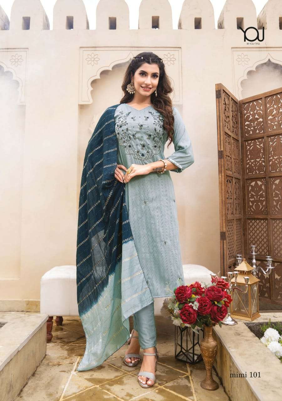 mimi by wanna chinon silk handwork readymade kurti with bottom & dupatta