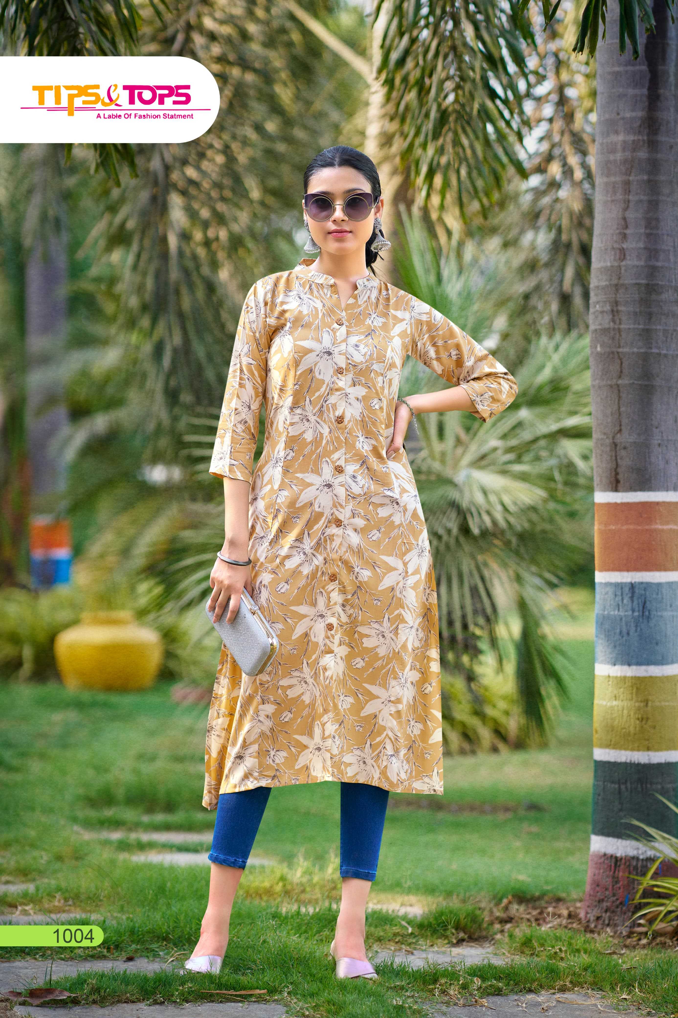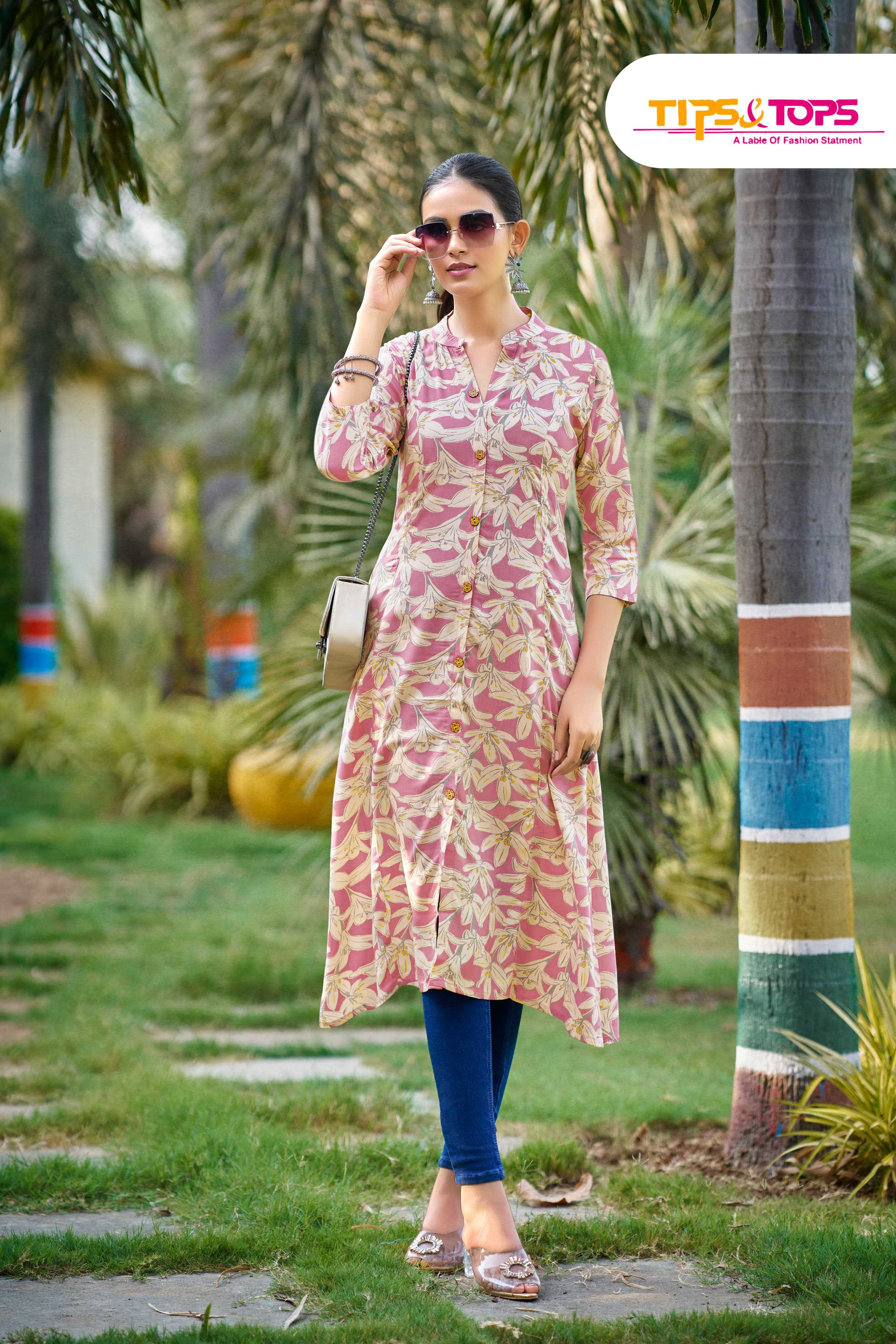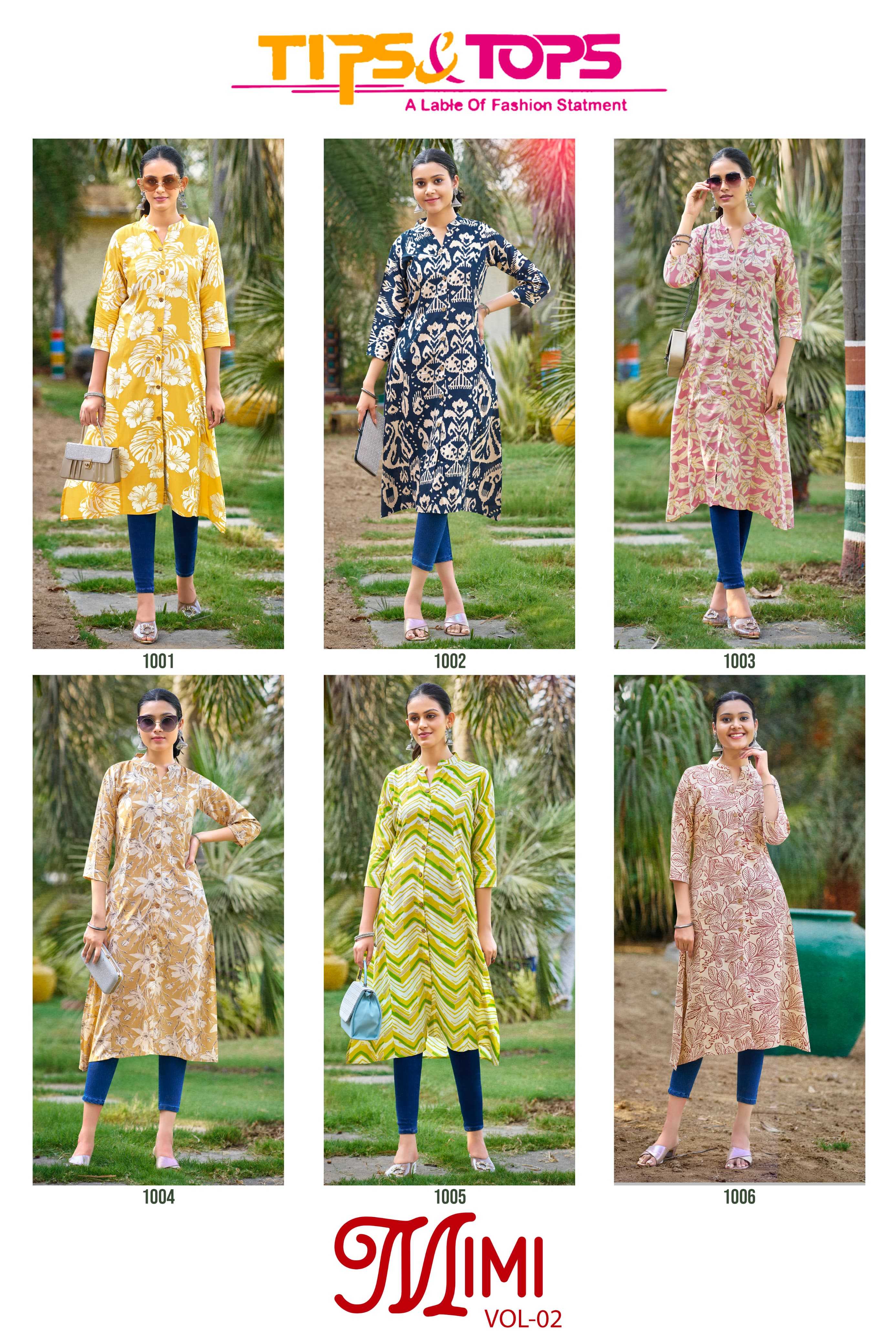 mimi vol 2 by tips & tops full stitch new trendy outfit a line pocket stylish kurti wholesaler
