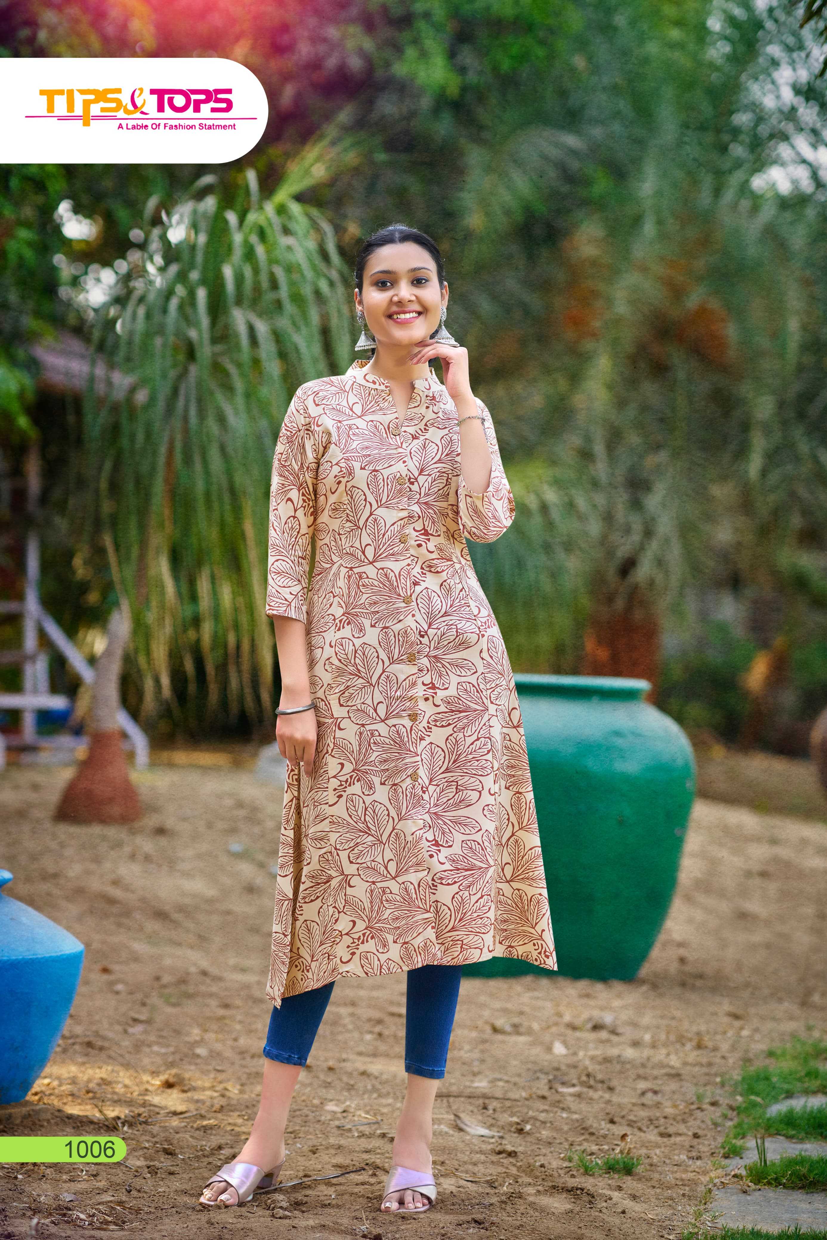 Namaste 👏🏻👏🏻 TIPS & TOPS Catalouge Name : 💃 MIMI Vol 02 💃 A Line Pocket Kurti Fabrics : Heavy Reyon Print Rate : 410/- +GST 5%