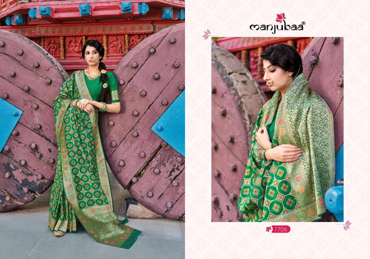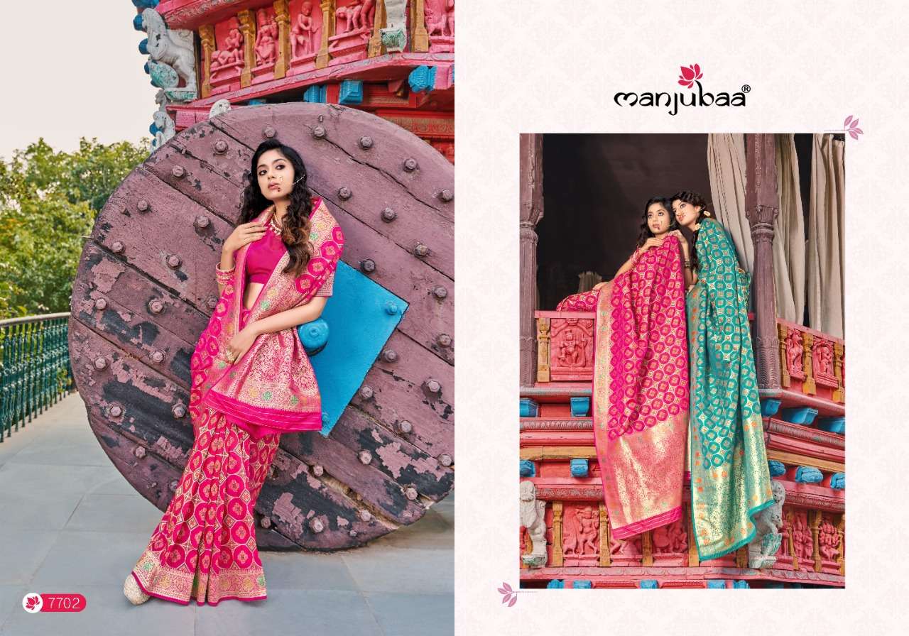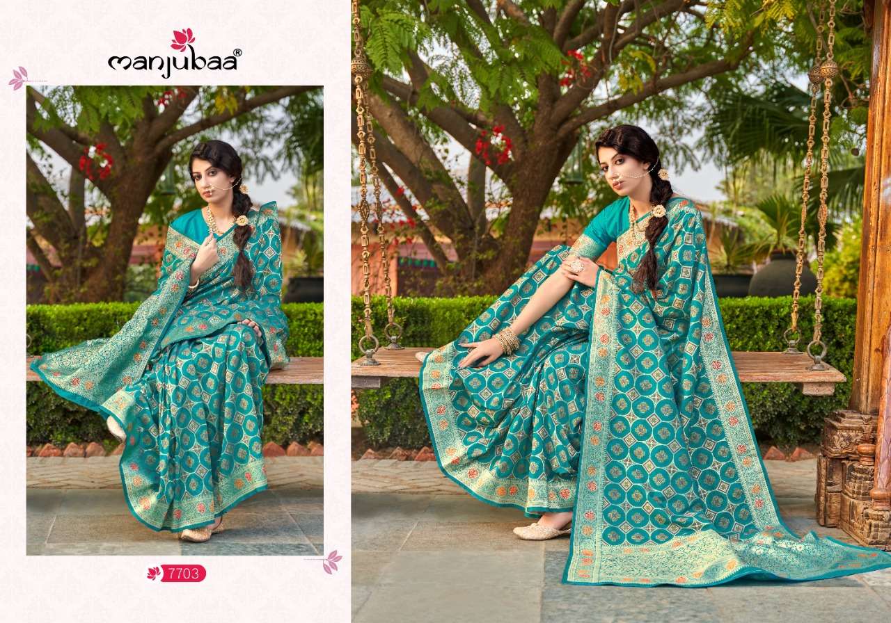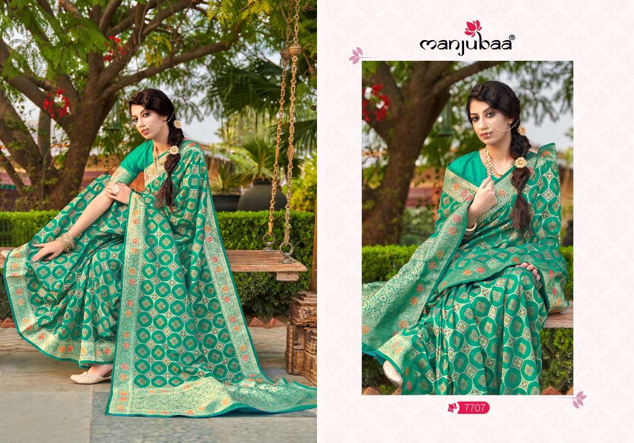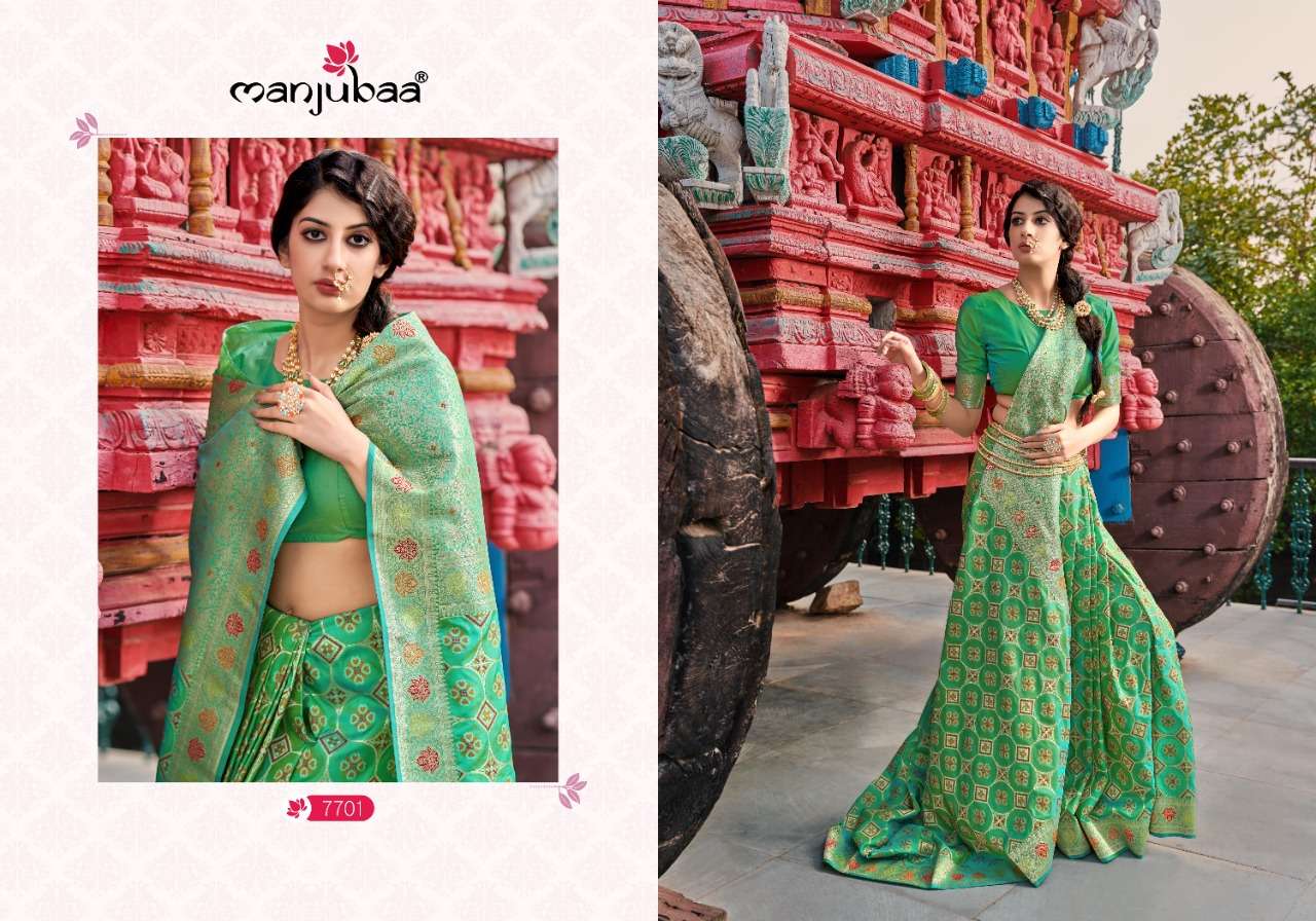 minnal silk by manjubaa 7701-7707 series banarasi soft silk designer saree
